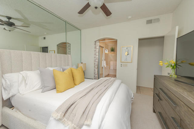 This rare premium location condo is the ''Champion floor plan,'' lower-level end unit and offers breathtaking lake views and mountains. Meticulously cared for with areas of remodeling is a gem two-bedroom condo. The stylish kitchen has new cabinets, soft close hinges with new quartz countertops, new recessed lighting, and upgraded appliances. A new sink and new faucet with a pull-down handle. The first primary bedroom, featuring a walk-in closet and ensuite bath, offers stunning views of the lake and patio area and is thoughtfully separated from the second primary bedroom (featuring a king size bed) for added privacy and a very nice updated en-suite. The extra storage is a wonderful feature for a condo. This home has not only been extremely well cared for - it has been loved and cherished by the owner, and you can feel the warmth and attention to the details once you come through the front door. This is one of finest Champion floor plan in PGA West and having gorgeous views of the lake from the living room, primary bedroom and outdoor patio is truly living the desert lifestyle. Attached garage large enough for car and golf cart. Long Term rent December 2025 thru November 2026 is $3,500/month. Seasonal rent November 2025 - April 2026 is $5,500/month.