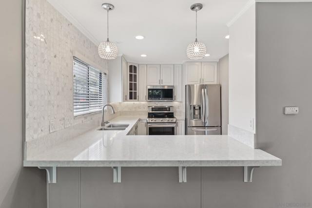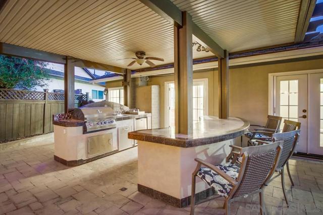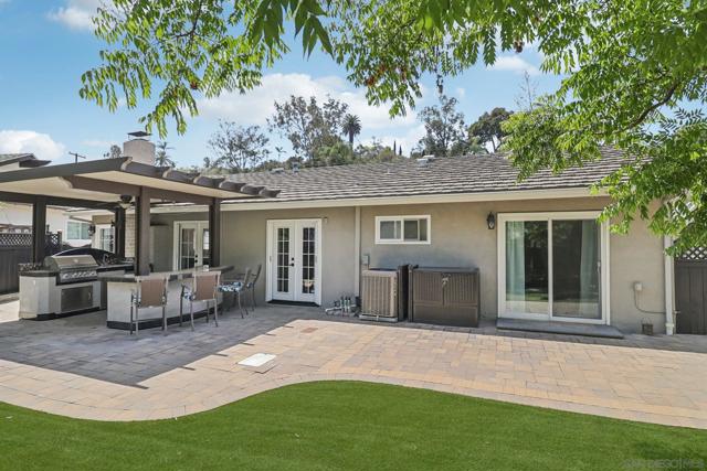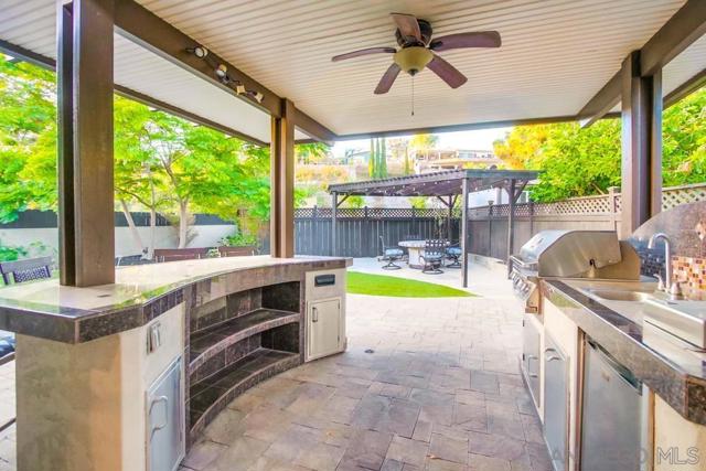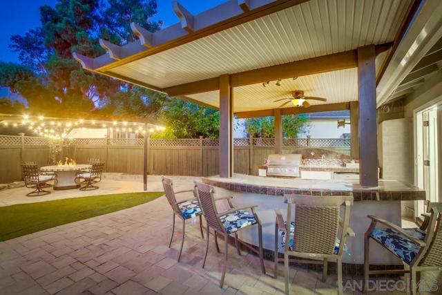 Exceptional single-level home featuring a custom built outdoor galley kitchen —complete w/ built-in BBQ, gas burner, sink, sound system and separate bar seating + Outdoor fire-pit table and chairs—ideal for San Diego’s indoor/outdoor lifestyle. Tucked at the end of a quiet cul-de-sac near SDSU, Trader Joe’s & College Area’s vibrant dining. This home also features an open flow w/ remodeled kitchen, updated bathrooms, stainless steel appliances, recessed lighting, crown molding, custom blinds & low maintenance yard...ADU Potential. Potential to covert family room into 5th bedroom or ADU conversion to garage w/ separate entrance. A private enclosed front patio offers yet another outdoor retreat with direct access to the two-car garage and laundry. Low-maintenance landscaping features artificial turf & pavers in backyard. Updated central heating and a/c, updated electrical, recessed lighting throughout.