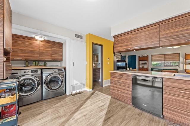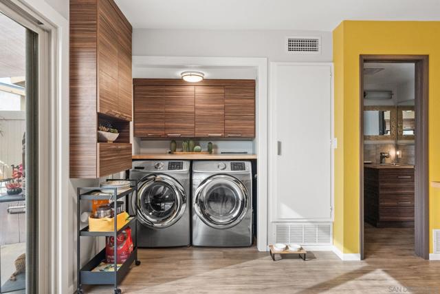 Welcome to this beautifully updated 2-bedroom, 1.5-bath townhome just moments from Lake Murray. Featuring a modern open layout, the home offers upgraded vinyl plank flooring downstairs and durable industrial-style flooring upstairs, both built for easy maintenance and long-term durability. The renovated kitchen highlights industrial-inspired countertops, updated cabinetry, and sleek black appliances, creating a clean and functional everyday space. The private patio yard is perfect for relaxing or entertaining, while the primary bedroom features its own balcony with natural light and peaceful views. Additional highlights include in-unit laundry, a private garage, dual-pane windows, and thoughtful upgrades throughout. The well-maintained community offers resort-style amenities including a pool, spa, tennis, pickleball, and more. Conveniently located near Lake Murray, Mission Trails, shopping, and dining, this is easy San Diego living at its best.