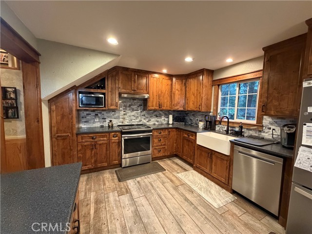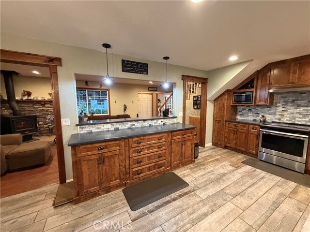 Charming and Peaceful Ranchette on over 3 acres! This amazing property has it all! Completely updated 3BR, 3BA Home. Newly remodeled kitchen with gorgeous custom Alder cabinets and Corian counters. Bathrooms updated with modern vanities and custom tile accents. Interior features beautiful solid custom wood doors and trim throughout the home. Handsome raised hearth with central wood burner keeps home warm and cozy in winter weather. Acreage is set up for horses, chickens or whatever your fancy. Property is fenced and cross fenced including a Great new 32'X36' metal barn on slab with enclosed storage that can be used as a shop. Numerous outbuildings including 36' X12' detached workshop and covered RV pad. Fully landscaped with sprinklers, raised garden beds, small outdoor pond and cozy patio with a hot tub included! Detached large two-car garage has a finished 12'X24' bonus room above that could function as an office, plus extra shop area and a dog kennel. Ranch includes electric front gate and has a 2500 gallon water storage tank. Located in a great neighborhood on a private road and backs up to green belt with many trails and creek access. A truly peaceful and lovely property beautifully maintained and ready for the next happy owners. This is a special property for one lucky Buyer!!