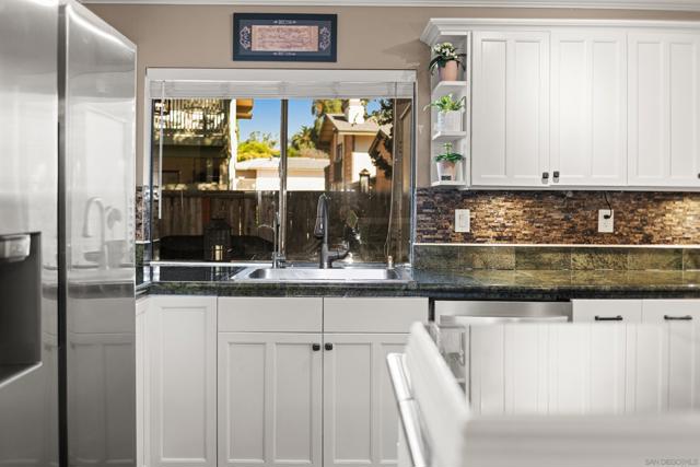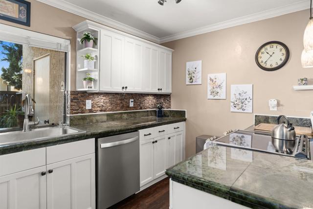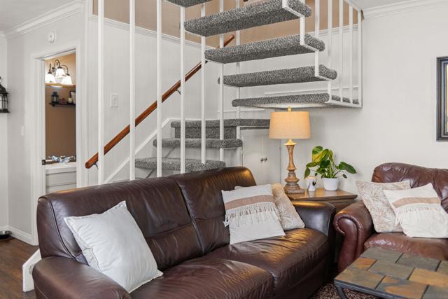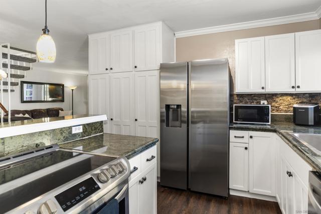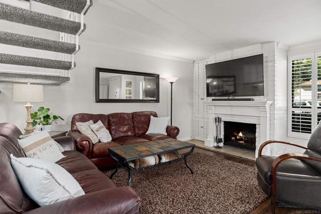 Welcome to the garden-like setting of Mission Playmor! This spacious townhome features generously sized rooms designed for modern living, and lives like a detached home. The beautifully updated kitchen features custom cabinets, quartz countertops, and stainless steel appliances, while the spacious living room offers a cozy brick fireplace and elegant plantation shutters that add a touch of sophistication. Upstairs, natural light pours in through skylights in the stairway and in the primary bathroom. The primary suite includes a private balcony, ample closet space, and dual sinks in the large, ensuite bath. Two additional bedrooms provide peaceful views, and the bonus attic storage adds extra convenience. Step outside to your private patio with a laundry room, and also go enjoy the community amenities, which include two pools, a hot tub, and tennis courts. Ideally located near SDSU, Snapdragon Stadium, Fashion Valley, and major freeways, this home offers the perfect blend of comfort and accessibility. Don’t wait - this home is fantastic!