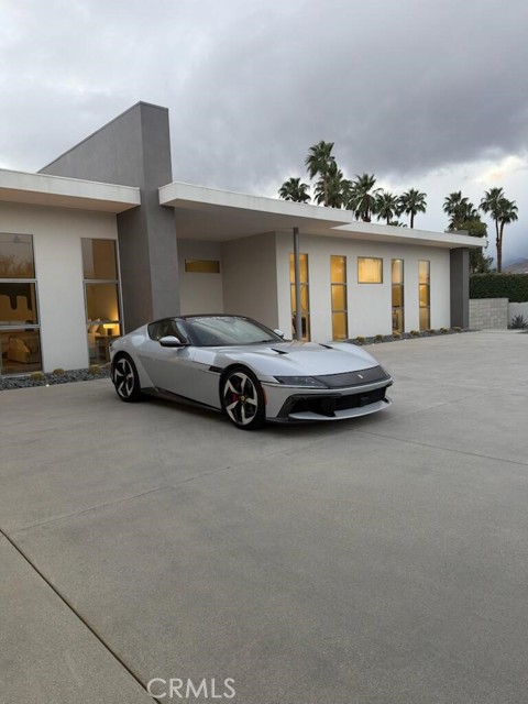 Set on a private 1-acre estate with south facing panoramic mountain views, new custom built 6,752 square foot residence blends luxury and mid-century with today’s most advanced technology and finishes. Enclosed behind 6-foot block walls and a wired security system, this property offers unmatched privacy. Entering through a 7ft wide 12ft tall custom pivot glass door, the great room opens to the outdoors with 40’ x 12’ automated pocketing glass walls, creating a seamless flow between living, dining, and entertaining. The chef’s kitchen is anchored by a 6.5 x 13 foot waterfall quartz island with seating for eight, dual dishwashers, commercial-grade Viking appliances, a custom vent hood, built-in espresso machine, and beverage station. Custom rift-sawn white oak cabinetry, imported Italian porcelain tile, and custom wide plank white oak engineered flooring elevate every detail. The main residence features 6,072 square feet, 5 bedrooms, 5 bathrooms, a formal powder room, temperature controlled wine cellar, including a primary suite with a private fireplace, floating dual vanities, Toto Neorest bidet, wet bar with wine fridge and its own climate zone and water heating system for ultimate comfort. A flexible bonus room offers endless possibilities—gym, office, or theater. The family room is designed for effortless entertaining, featuring a wet bar with dual refrigerators. The space has integrated surround sound. Extending the experience outdoors, the property is equipped with a whole-estate speaker system, including hidden speakers throughout the landscaping for seamless indoor-outdoor living. The spacious laundry room leads to the 4 car temperature controlled garage with epoxy flooring. Outdoors, a 500 sq. ft. entertainer’s cabana rivals any luxury resort with a full Viking kitchen, 36” barbecue with rotisserie, refrigerator, dishwasher, fireplace, TV, misting system, and full bath with outdoor shower. Entertain at the sparkling 60 foot pool with fountains, an app-controlled fire pit, and outdoor lounge areas complete the space. For guests, a detached 680 square foot casita provides a private oasis with a living area, bedroom, full bathroom, two high powered Mitsubishi AC units, kitchenette, and laundry. Every system in the home is designed for luxury: 5 Wi-Fi controlled HVAC zones, commercial-grade insulation, variable-zone cooling, tankless water heaters, concealed owned solar, custom lighting, surround sound, and whole-property misting and music systems.