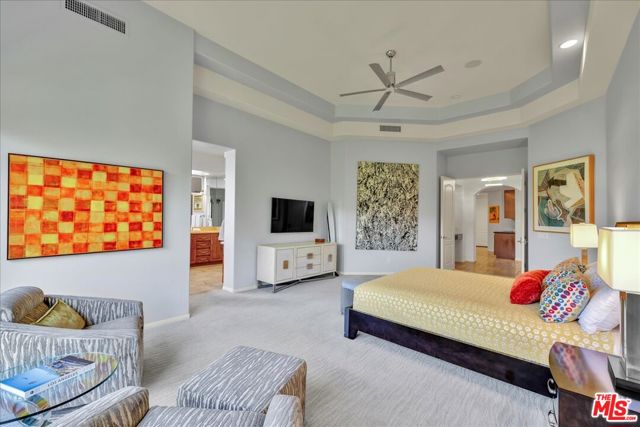 Wake up each day to luxurious Rancho Mirage living in the exclusive gated enclave of Carrera Estates. Set on an oversized lot with breathtaking San Jacinto Mountain views, this residence invites a lifestyle centered on elegance, entertaining, and privacy. Sunlight pours through expansive windows, illuminating soaring 14 foot ceilings, travertine floors, and open living spaces designed to gather and relax. Featuring 4 bedrooms, 5 bathrooms, including a casita with a private entry to welcome guests. Gather in the gourmet kitchen which seamlessly flows into the great room and formal dining areas. Retreat to the serene primary suite with its high ceilings, dual vanity bath, and walk-in closet. All bedrooms are ensuite with patio access. Evenings are best enjoyed outdoors, where lush landscaping surrounds a custom saline Pebble Tec pool and spa beneath a star-studded desert sky. Home has solar panels and a climate-controlled 3-car garage, plus a private gated entry. Minutes to Eisenhower Hospital and golfing. Enjoy a stroll to nearby dining, shopping, and entertainment. This home offers more than a place to live. It delivers a refined desert lifestyle.
