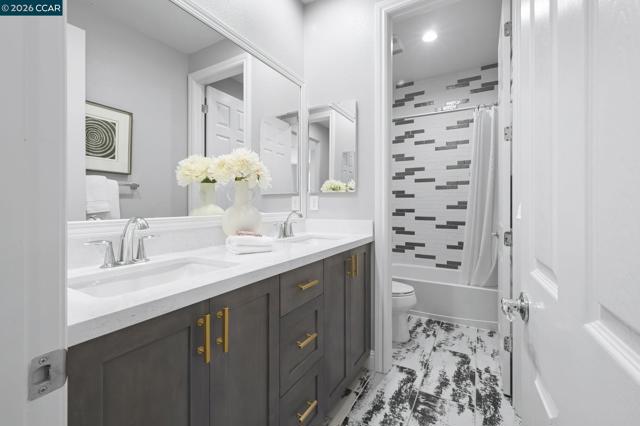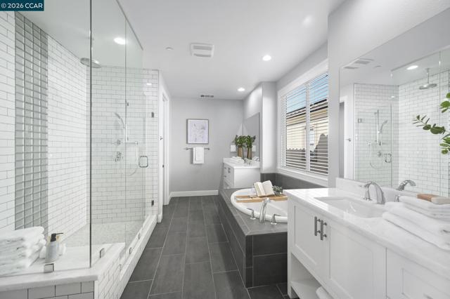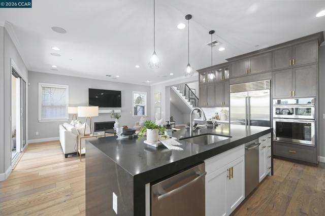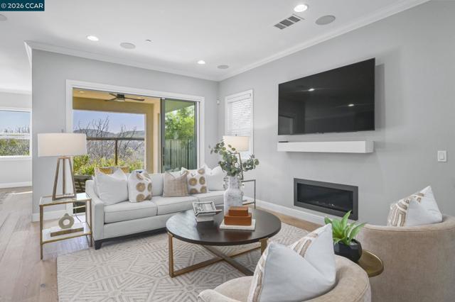 Sophistication and grace abound in coveted Gale Ranch. This exceptional residence truly has it all, enhanced by hundreds of thousands of dollars in thoughtfully curated, high-end upgrades throughout. Rich hardwood flooring, custom carpeting and refined finishes create an atmosphere of timeless elegance and comfort. At the heart of the home is a spectacular chef’s kitchen, beautifully appointed with premium JennAir appliances, Sub-Zero refrigerator, striking waterfall island and remarkable custom cabinetry. Upstairs, a spa-like primary suite offers unparallelled elegance. An inviting patio and yard offer a rare sense of openness and tranquility, showcasing wide, unobstructed views with no direct rear neighbors - ideal for relaxed outdoor living and memorable entertaining. Located within the top-rated San Ramon Valley Unified School District, this home enjoys exceptional convenience to shopping, dining and everyday amenities. Low HOA dues provide outstanding community features, including a sparkling pool and spa, well-equipped fitness center, and playground - resort-style living at its finest! A rare opportunity to enjoy modern comforts and an enviable location in one of Gale Ranch’s most desirable settings. Ideal floor plan features a bedroom and full bath on the first floor!
