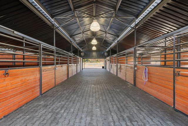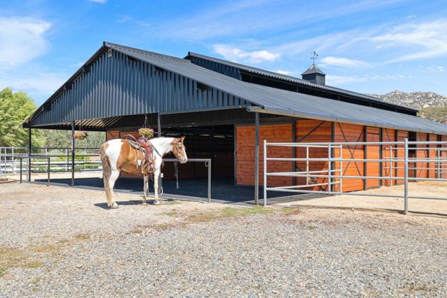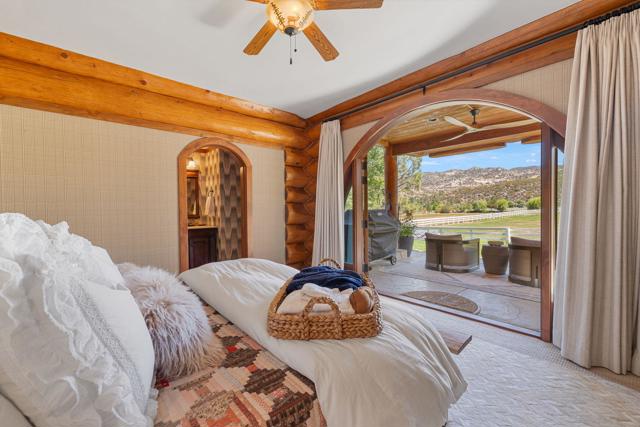 Tucked away in Garner Valley, this handcrafted log estate pairs rustic charm with refined luxury. Not just a home, but a true mountain retreat this 9.56-acre equestrian estate in Garner Valley offers privacy, views, and craftsmanship rarely seen today. The handcrafted log residence spans 2,472 sq. ft. with 3 bedrooms and 4 bathrooms, soaring ceilings, a dramatic stone fireplace, and French doors that open to a deck framing the San Jacinto Mountains. Out every window, you'll find a mountain view with endless skies. The kitchen blends rustic character with modern ease: custom cabinetry, granite counters, and premium appliances set the stage for memorable gatherings. Warm woodwork pairs beautifully with thoughtfully selected custom wallpaper, adding a touch of elegance and personality. The primary suite feels like a spa getaway with its stone bath, and soaking tub. While the upstairs guest suite enjoys its own dedicated bath. The downstairs guest suite features its own en-suite bath and a private deck overlooking the pastures, complete with a jacuzzi for ultimate relaxation. Equestrian amenities include a six-stall barn with tack room, half bath, and dog wash, plus turnouts and a round pen. Additional property features include a full RV barn, dedicated kennels, a steel pole barn, and a whole-house Generac generator for peace of mind during power outages. From the back deck, you can watch your horses graze, or saddle up and ride directly onto miles of scenic trails right from your own backyard. At the heart of the property lies a stocked pond with fountains, a refinished deck, and the perfect place to unwind at the end of the day. Recent improvements include: full cedar log restoration, smart irrigation with multiple zones, pond and filtration upgrades, barn and fencing restoration, electrical and plumbing updates, refinished decks, interior woodwork, light fixture upgrades, and more. A rare blend of natural beauty, curated finishes, and lifestyle freedom this estate is truly an escape. Garner Valley features 26 miles of private horse riding trails, and a community arena and center. Home includes 2 APNS.