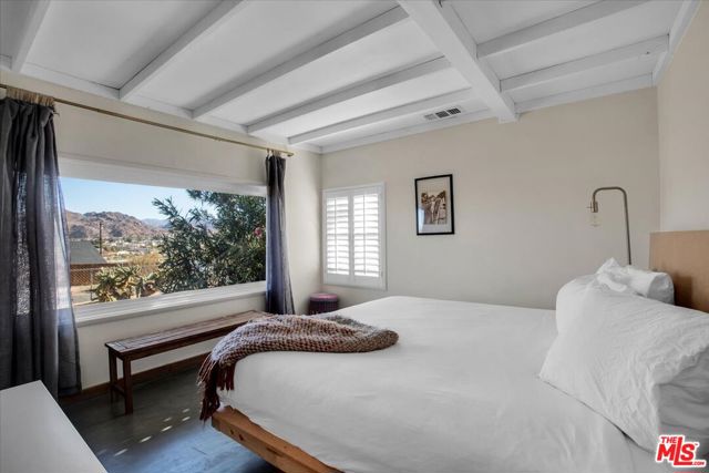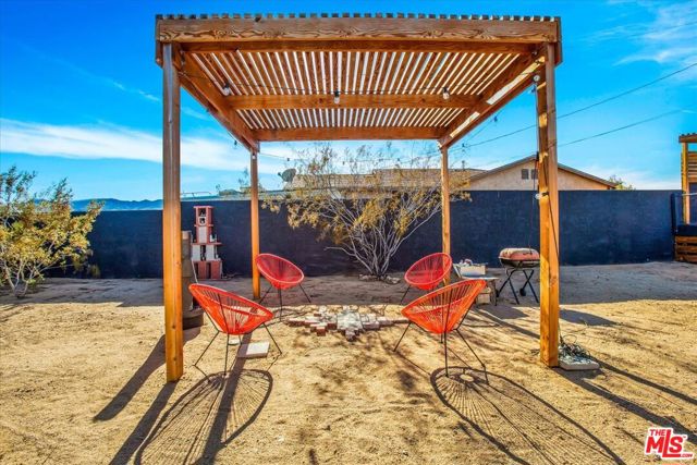 Perched in the foothills of Downtown Joshua Tree, this special desert compound offers 2 bedrooms and 1.5 baths, a large bonus room off the kitchen, and private outdoor spaces to relax and entertain on a spacious 0.33-acre lot. This 1,368 sq. ft. home was lovingly updated in 2019, transforming it into a serene desert retreat to escape the buzz of the city. The open-concept kitchen provides ample space for prepping delicious dinners with produce sourced from the weekend farmers market down the street. Enjoy multiple outdoor zones: a courtyard with a hot tub under the stars anchored by a mature Palo Verde tree, a covered patio off the guest bedroom overlooking native creosote bushes, and a hammock platform with mountain views. On chilly desert winter days, cozy up to the living room fireplace or walk to the vibrant Downtown Joshua Tree strip to grab a coffee or bite to eat. Easily pop into the National Park for a sunset atop a pile of boulders, venture to Pappy's for a concert in Pioneertown, or drop in to the Tiny Pony for some beers- you're a local now!