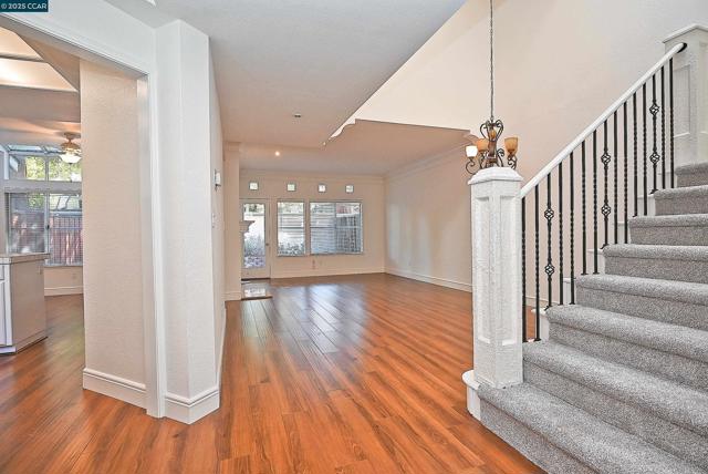 A very spacious home with a large living room and dining area. A nice kitchen that has a has a separate eating area and a door that opens to the back patio. The master suite bright and open. A large master bathroom with spacious closets. Two more bedrooms o this level and 1 bathroom. The laundry room is off the down stairs hallway that opens to the attached 2 car garage. New carpets, window coverings and fresh paint through the entire home. Easy access to pool area. Apply with RentSpree https://apply.link/M8Jz5eg