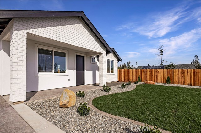 Are you looking for something tucked away and Privet? This might be the house for you. Perched back from the road with a extra wide stamped driveway. This is truly a one of a kind home you don't want to miss this one. It is a short commute to Chico. Home sits way back, with wide RV access on the left. Paid Off Solar, This is a excellent opportunity. Will feel like home as soon as you see it. This Single Story Featuring 2 bedrooms & 2 Full baths 9ft Ceilings throughout. Quality materials used, With custom design elements. This home features a modern touch with a open floor plan. Large Kitchen with Quartz Counters, Soft Closing Cabinet Doors. Stainless Steel Appliances. Electric fireplace in living room. Beautifully landscaped!! This home has it all. This Wont Last Long!! Fantastic Opportunity. Show less