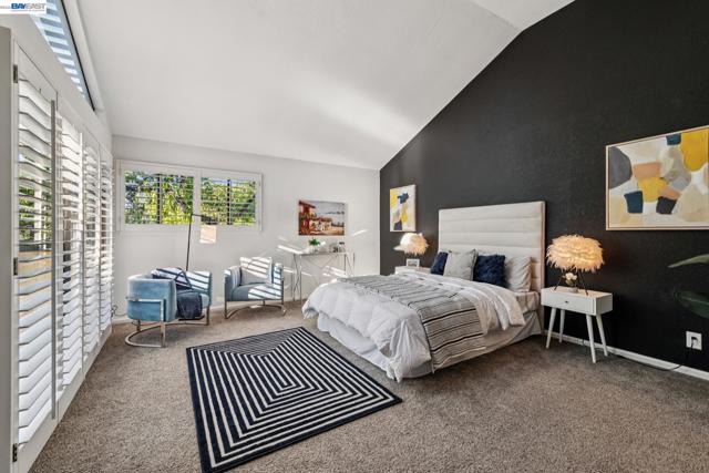 Updated Duet style with only one common wall, lots of windows on all other three walls. Highly upgraded 2-story home with cathedral high ceiling. Combines a desirable location with a contemporary design, all within Alameda's sought-after Harbor Bay Isle with excellent schools. A stroll to tranquil lagoon trail & park or commute to the Ferry to downtown SF, Express transbay bus and free shuttle bus to Oakland Bart station. Built in 1978, this bright, airy home features 2 oversized primary suites, 2.5 BA, living room (with a flex space for a potential home office or dining room), an open kitchen/dining room (or family room) combination that goes to patio, and an attached 2-car garage. Details include vaulted ceilings, a fireplace, an attractively updated kitchen, and lots of natural light. The main primary bedroom features a vaulted ceiling, spacious balcony and a walk-in closet. All 3 baths are upgraded with stylish tiles, vanity and walk-in showers. Enjoy the community heated pool or a relaxing soak in the in-ground spa. Located only 1/2 mile from Harbor Bay Landing shopping & easy access to top performing schools, the SF Ferry, and Shoreline Park + the SF Bay Trail with fantastic views of San Francisco's skyline. Enjoy this home in an exceptional Alameda location!