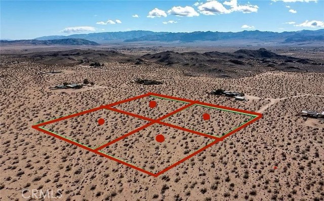 Rare Joshua Tree Subdivision – 4 Parcels w/ RTI Plans for Homes + ADUs + Pools! Incredible builder/developer opportunity! Four contiguous 2+ acre parcels (APNs 0605-231-44, 45, 46 & 47) sold together—each nearly RTI (Ready-to-Issue) for a custom home, ADU and private pool, each with its own address. Survey and percolation test completed. Will-serve letter secured from Joshua Basin Water District; power nearby. No Joshua trees impacting development. Stunning unobstructed views of Joshua Tree National Park, close to paved Border Ave and minutes to downtown. Designed for STR or luxury desert living perfect for investors. No seller financing.
