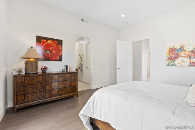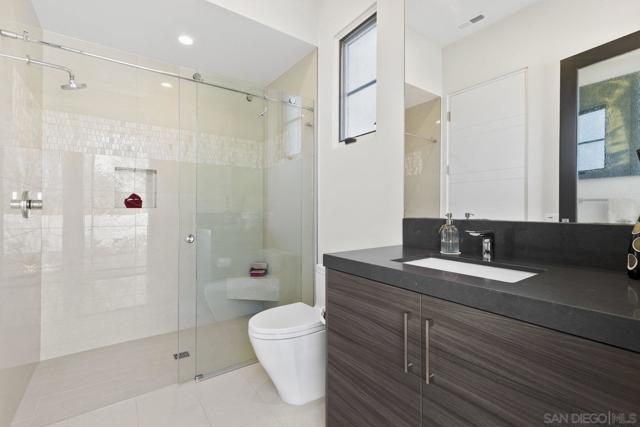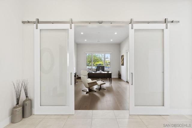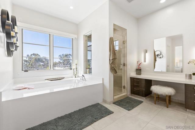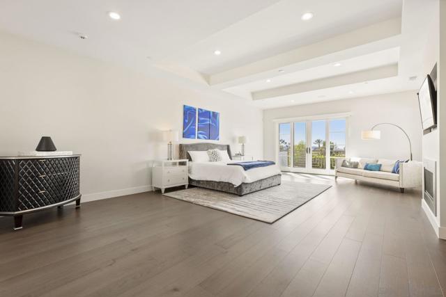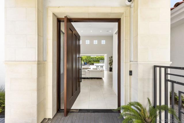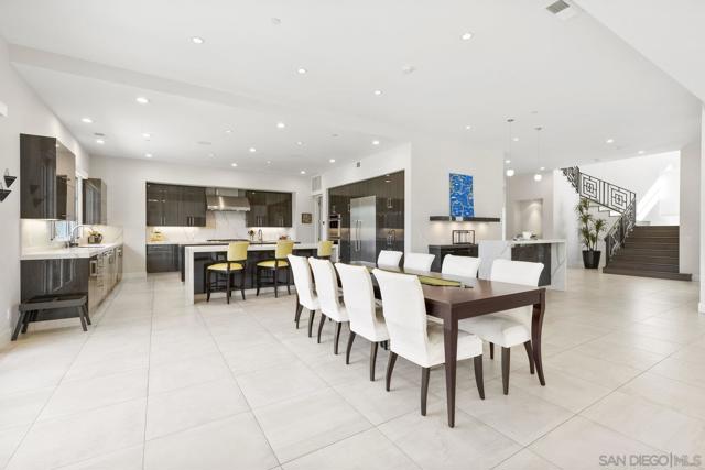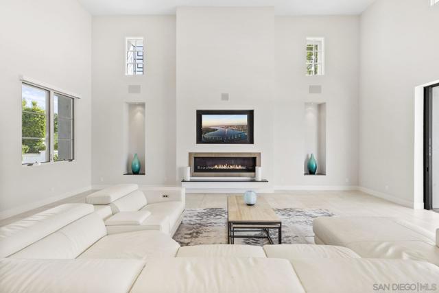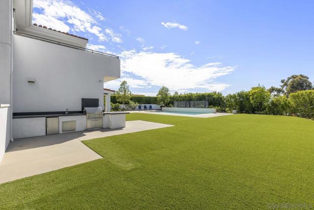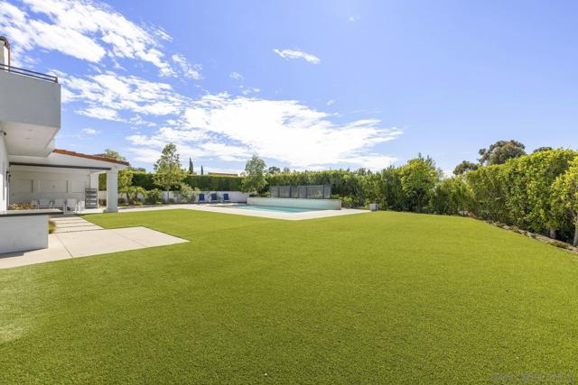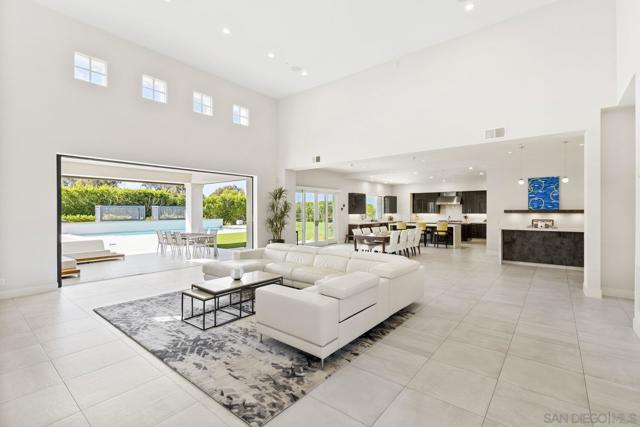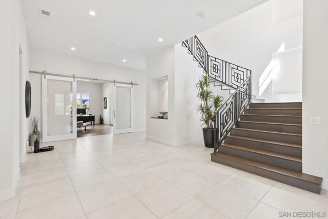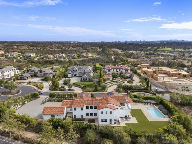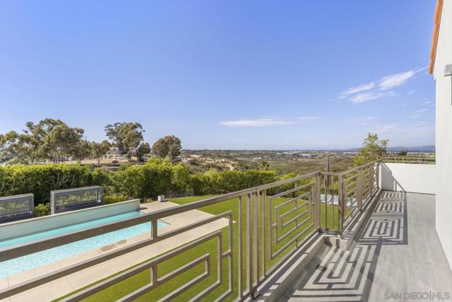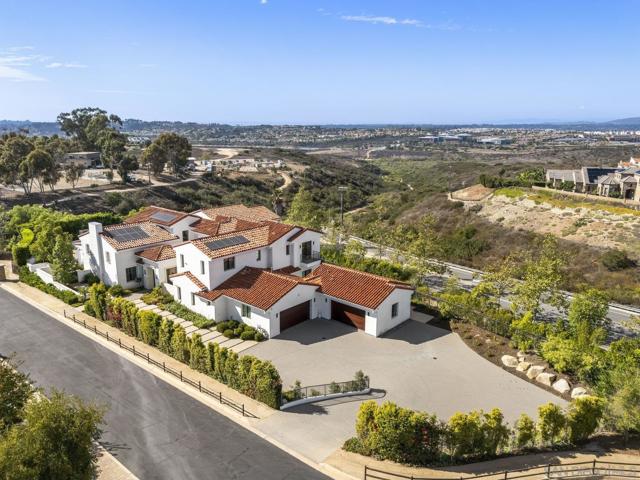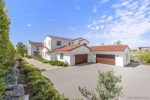 This spectacular Spanish Contemporary estate offers 7,016 SF of modern luxury on nearly an acre in the gated enclave of The Ridge Estates in Del Mar Mesa. Thoughtfully designed with extraordinary attention to detail, the home features 5 spacious ensuite bedrooms plus an office with full bath (optional 6th bedroom). A seamless blend of modern design and eco-conscious materials creates a sophisticated yet comfortable retreat. Floor-to-ceiling cantina doors open to true indoor-outdoor living: a covered loggia, sparkling pool, expansive turf play area, outdoor kitchen, and privacy hedges. The chef’s kitchen boasts Thermador appliances, dual islands, and a walk-in pantry. The primary suite offers a spa-inspired bathroom, elegant custom closet system, sleek fireplace, and private deck with 180° panoramic northern and westerly views. Additional highlights include rooftop solar, a 4-car garage with epoxy floors and abundant storage, soaring ceilings, oversized hallways, and designer finishes throughout. Nestled among Del Mar Mesa’s rolling landscapes yet just minutes from shopping, dining, and freeway access, this rare estate combines elegance, privacy, and breathtaking views—defining luxury living in North County San Diego.