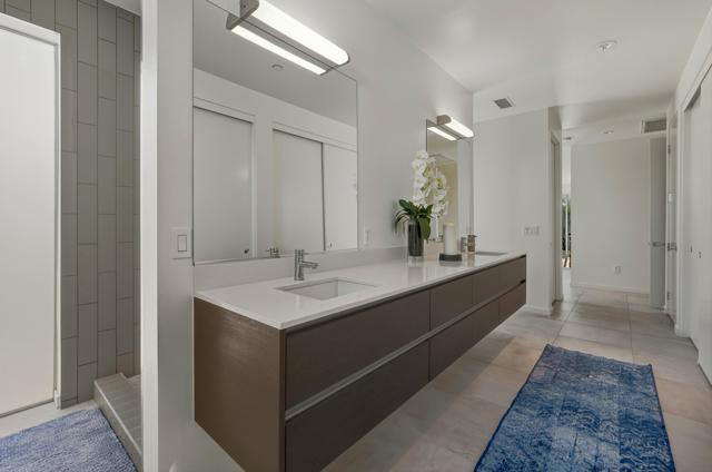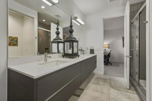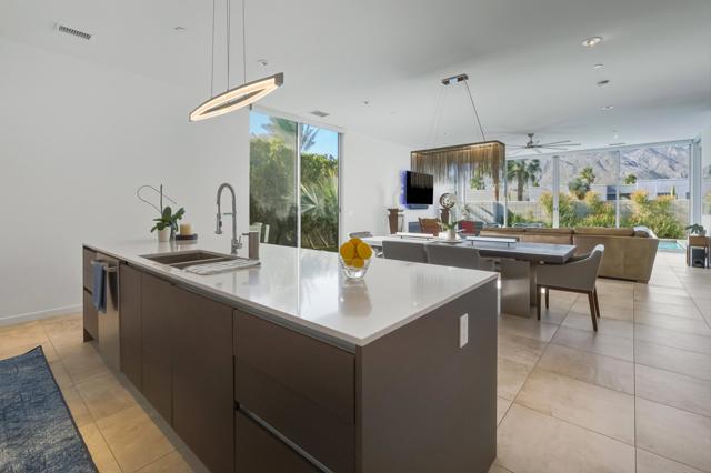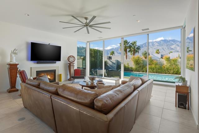 PRICE ADJUSTMENT!! Welcome to Escena, where luxury meets contemporary elegance in this highly desired Anthony Poon designed home with AMAZING views of the San Jacinto mountains. This beautiful Alta Verde home features a wall of Fleetwood sliding doors that open to a front-loaded pool and spa, showcasing phenomenal views of the western and southern mountains. One of the larger homes in Escena, this home offers 2649 sq. ft. of luxurious living space with 3 bedrooms and 3 bathrooms. A chef's kitchen is a culinary delight with quartz countertops and backsplash, Italian designed cabinetry, stainless-steel Bosch appliances and an oversized island. The spacious open floor plan consists of the kitchen, living and dining areas, 10'+ high ceilings, porcelain tile flooring, a fireplace, custom lighting, and spectacular views. The expansive primary bedroom suite, extending the entire width of the home, has cornered Fleetwood sliding door access to a private back patio, a huge double-headed walk-in shower tucked behind dual vanities, and an extra amount of closet space, all organized by California closets. The two guest bedrooms share a Jack and Jill bathroom, with good separation from the Primary bedroom. This home offers Palm Springs indoor/outdoor living at its finest with dual sets of Fleetwood sliding doors opening from the great room to the outdoor patio and pool, perfect for entertaining or just relaxing in the sun as you revel in the unbelievable mountain views. Another Fleetwood sliding door opens from the kitchen to a lovely side yard/patio of pavers and artificial turf, perfect for relaxing or cooking on the outdoor BBQ. A blocked retaining wall spreads across the back of the property boasting lush landscaping, including beautiful bougainvillea bushes and Meyer lemon and tangerine trees. Lighting and landscaping surround the property, adding to the privacy of the outdoor space and its alluring night-time beauty. Additional highlights include motorized blinds in the great room and primary bedroom, a powder room for guests, a separate laundry room with cabinetry, 2-car garage, upgraded recessed lighting and 26 solar panels for energy efficiency. Escena is a highly sought after guard-gated golf course community with low HOA dues and resides on fee simple land (you own it). Do not miss this beautiful Palm Springs contemporary home, offering luxury, unparalleled comfort, style, and some of the best views in Escena!