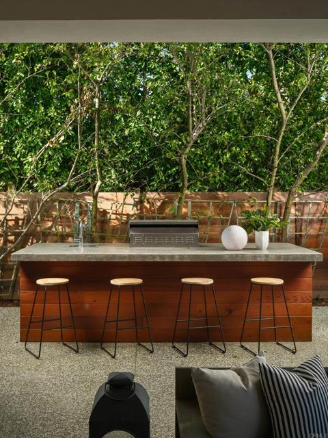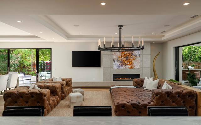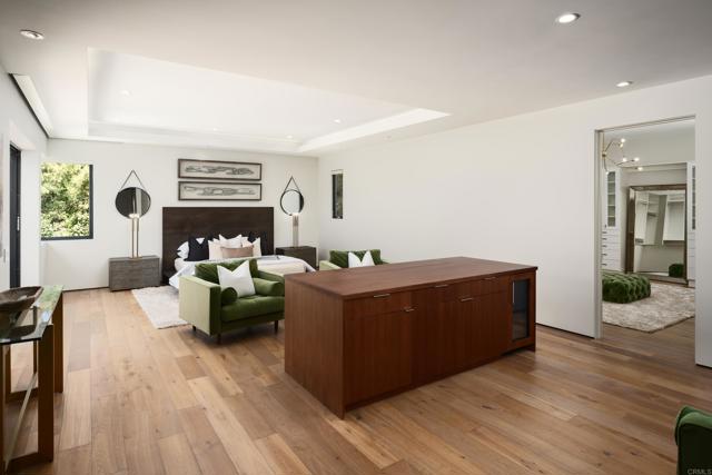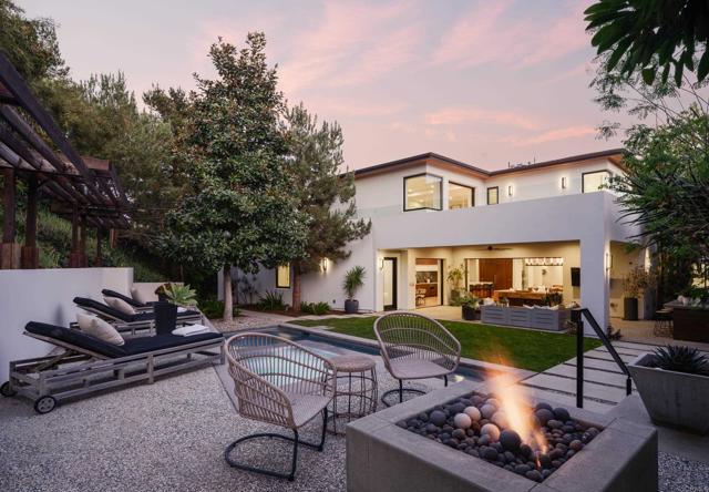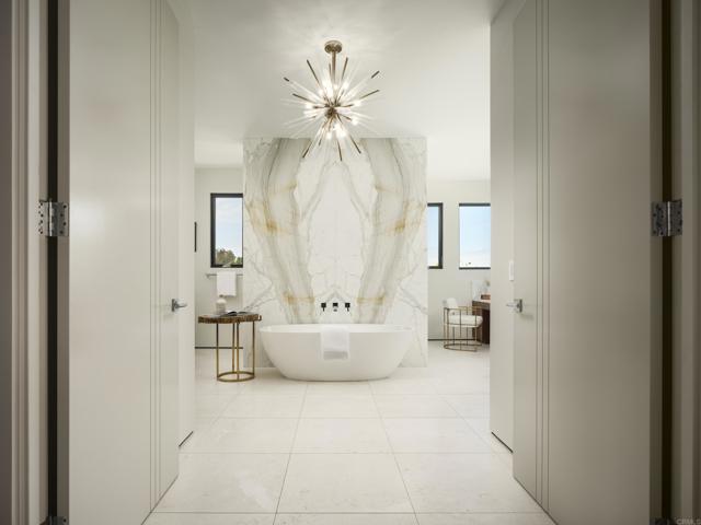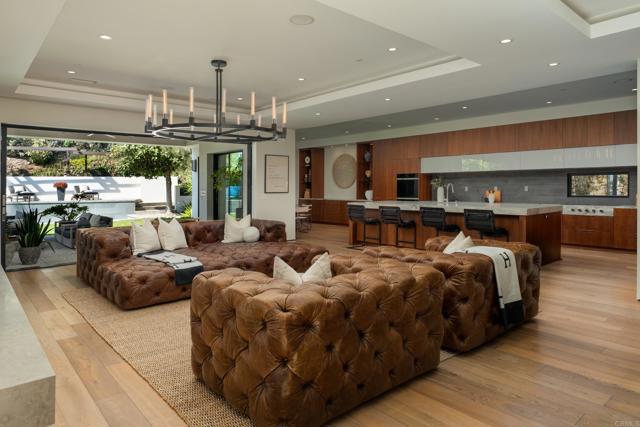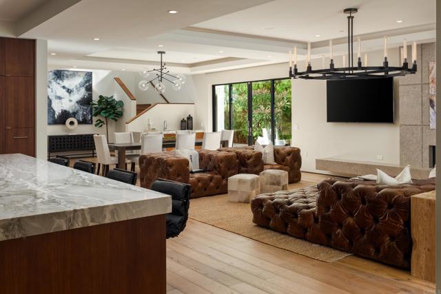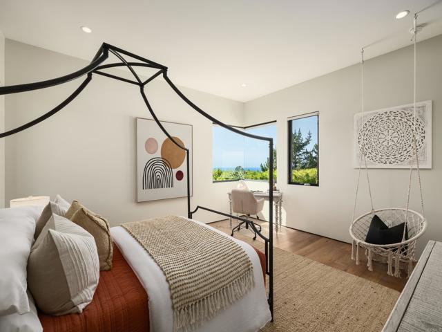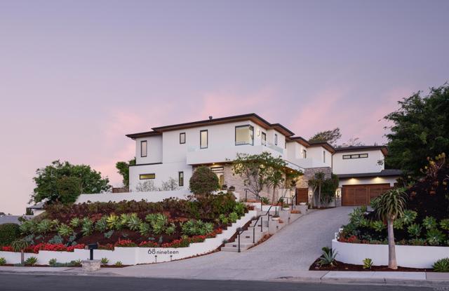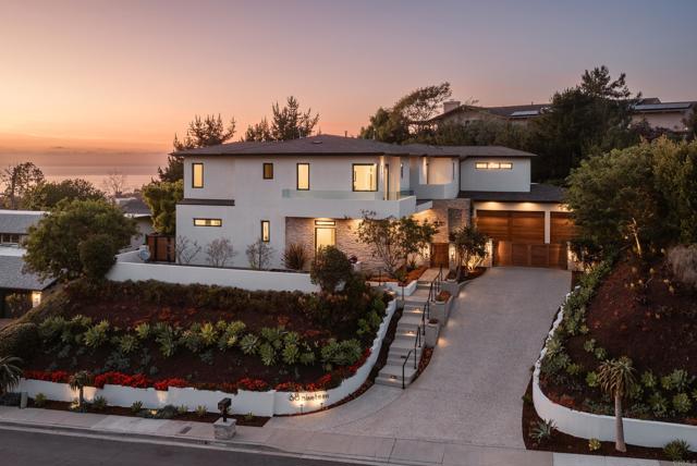 Ocean views and modern coastal design define this exceptional residence, offering effortless indoor-outdoor living in one of La Jolla’s most desirable neighborhoods. Set on a gently sloping lot, the thoughtfully designed floor plan centers around a dramatic great room with a chef’s kitchen featuring an oversized island, double dishwashers, and generous prep space, flowing into the family room and dining areas. Sliding pocket doors and mitered windows fill the home with natural light while opening to expansive terraces with multiple firepit seating areas, a covered patio with heaters, and an outdoor kitchen with built-in BBQ, creating ideal spaces for year-round entertaining. The layout offers two ensuite bedrooms and a private office with its own exterior entrance on the main level, plus three additional ensuite bedrooms upstairs, including the primary suite with an ocean-view terrace and spa-inspired bath featuring dual water closets. Additional amenities include an elevator, wine room, pool bath, outdoor shower, a laundry room with two washers and two dryers, and a gated three-car garage with a turntable. Featuring modern construction and premium materials throughout, this residence offers a rare opportunity to own a newer home in the heart of La Jolla.