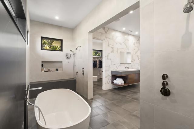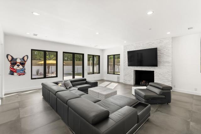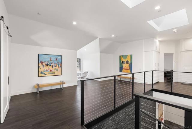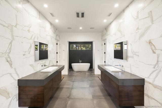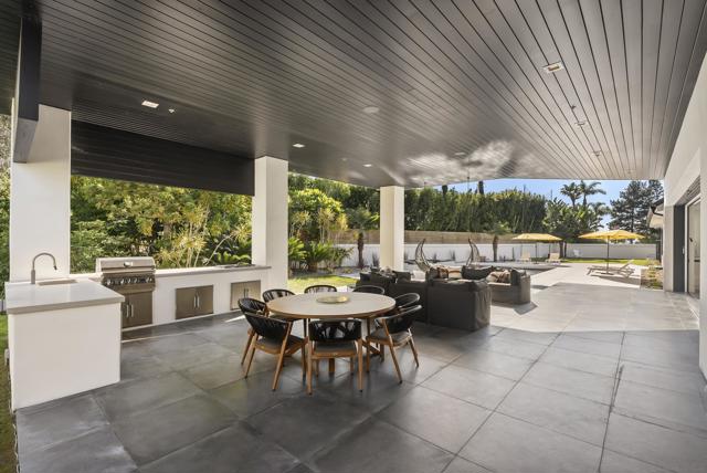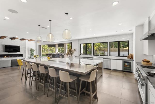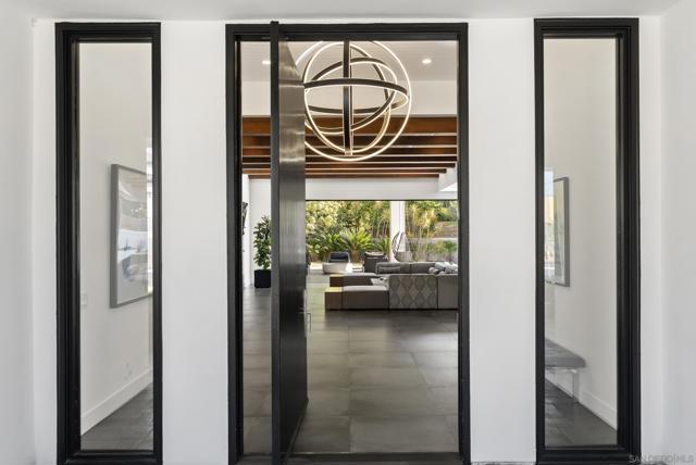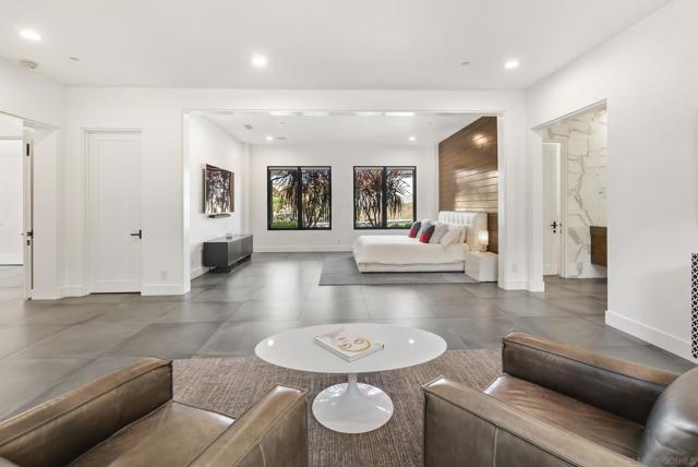 This 2019 ground-up transformation by luxury builder Danny Hampel is better than brand new! Meticulously reimagined, this modern masterpiece offers 10,279 SF under roof, centered on an expansive great room where living, dining and chef’s kitchen flow seamlessly around a dramatic nine-foot linear fireplace and a full wall of disappearing pocket doors for true indoor–outdoor living. The covered outdoor salon features overhead gas heaters, a fully appointed outdoor kitchen with grill, range top and mini fridge, gas fire pit, and a dedicated pool bath with walk-in shower. Resort-style entertaining at every turn! Designed to live like a single-level estate, the entry level hosts a sumptuous primary suite, a private office and a two-room guest suite. Upstairs offers a generous bonus room, four additional bedroom suites and a fully-equipped gym. Every major system and finish was replaced or upgraded in 2019: new roof, owned solar, premium windows and doors, dual HVAC systems, four tankless water heaters, new pool and backyard hardscape — all curated for effortless ownership. This is worry-free luxury — striking, sophisticated, and exquisitely appointed for modern living. You'll love the Fairbanks Ranch lifestyle! Residents enjoy gated security with 24-hour roving patrols, and 75 acres of dedicated open space with a lake, clubhouse, four tennis courts, four pickleball courts, walking trails, private park for children and a top-notch equestrian center with three riding rings. Great public and private schools are close by.