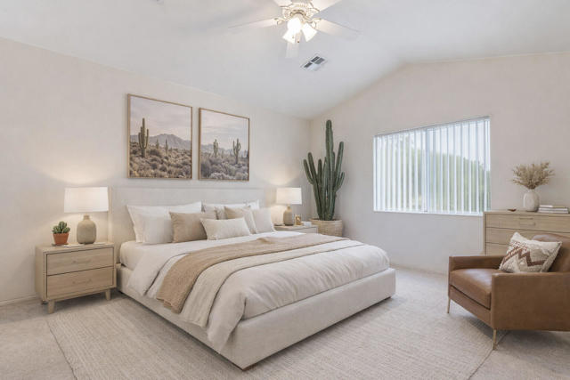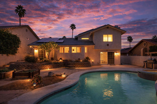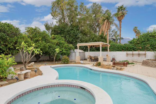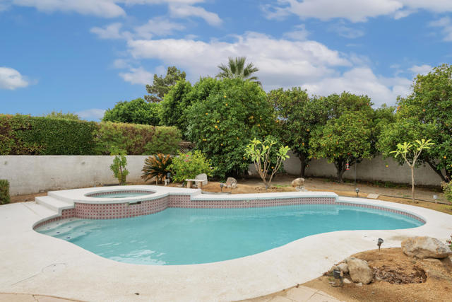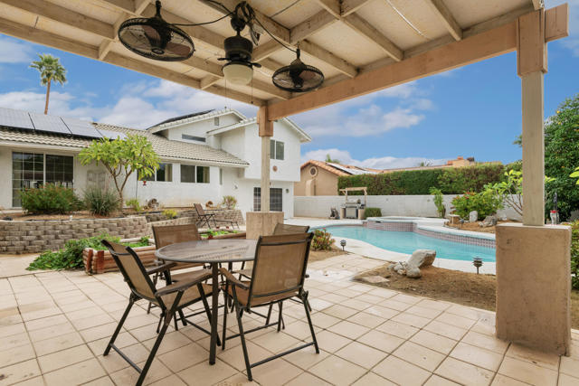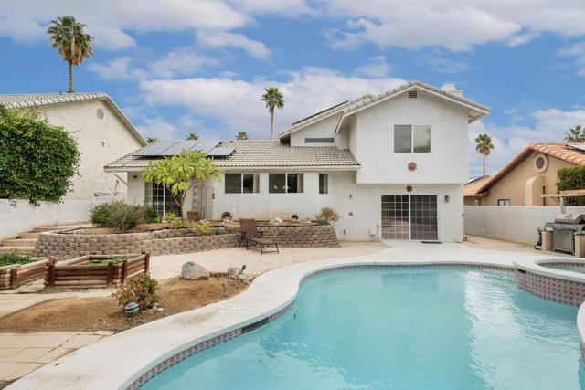 ''Your Private Desert Oasis Awaits: A Blank Canvas in Cathedral City''Please note: some photos virtually staged.Discover the potential of this spacious 4-sizable bedroom( 1 bedroom downstairs) 3-FULL bathrooms tri-level home, a true diamond in the rough with an unparalleled PRIVATE outdoor living space. Situated on a generous 8,276 sq. ft. lot in a quiet neighborhood, this property is the perfect canvas for those dreaming of customizing their Palm Springs-area retreat.The SOLAR (leased $225 monthly) home offers a substantial 2,371 sq. ft. of living space with good-sized bedrooms and a functional layout, providing the ''good bones'' for a stunning renovation. Home is also move in ready but you may want to paint and add new flooring that's all...The huge, private backyard, featuring a freshly gunited pool and spa, a covered seating area, a gas BBQ, and mature fruit trees. This space is a haven for relaxation and entertaining, epitomizing the highly desirable indoor/outdoor desert lifestyle.Conveniently located just minutes from local amenities, dining options, and casinos, combining a secluded feel with easy access to all the desert has to offer!Come on by and see for yourself!