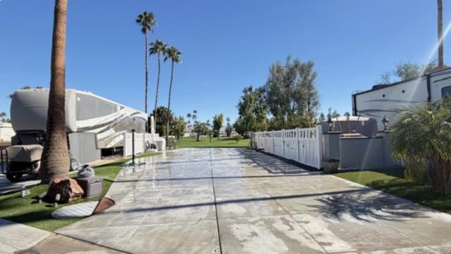Lot 764, GOLF COURSE frontage with newly expanded and extended concrete pad sits near hole 2 of the 18 golf course mid-resort. This location is close proximity to the El Saguaro clubhouse, starter shack, pickleball courts, and Satellite D with pool and jacuzzi. All beautiful golf course views are at your rear and gorgeous Mountain View’s to the west. The lot is oriented east to west. Outdoor Resort Palm Springs (ORPS) is a Guard Gated 5-Star RV Resort Community offering an active and luxurious lifestyle featuring golf (27 holes), tennis, pickleball, swimming and more! Two clubhouses, fitness center, beauty solan, La Roma Restaurant on campus, dog park and more!