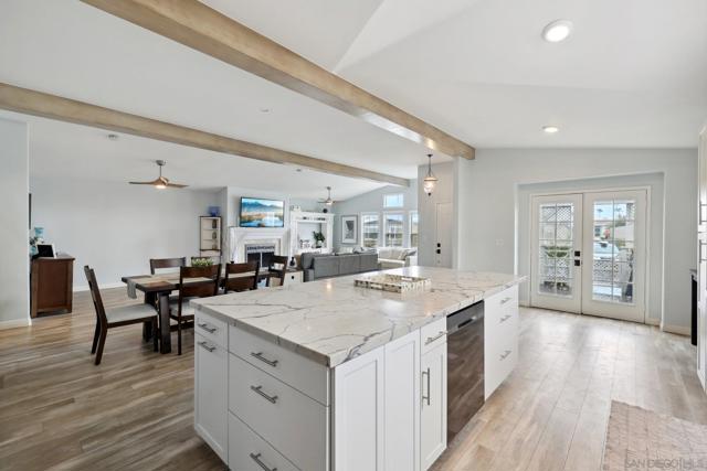 Motivated seller!! Priced to sell! Don’t miss this below-market opportunity! Bring all offers!! Welcome to one of the largest 2-bedroom, 2-bath homes in the highly sought-after 55+ community of Lakeshore Gardens in beautiful Carlsbad – just a block from the beach! This completely updated beachside retreat features a light, bright, and spacious open floor plan with modern coastal finishes that exude relaxation. The oversized great room boasts soaring beamed ceilings, a cozy fireplace, and plenty of space for living, dining, and lounging. The gourmet kitchen is perfect for entertaining, offering abundant cabinetry, generous counter space, and a large center island with breakfast bar seating. Step through the charming French doors and onto your private front deck, perfect for morning coffee or evening relaxation. The primary suite is a true king-sized retreat with space for a sitting area or home office, a huge walk-in closet, and a spa-like bathroom featuring dual vanities, a corner jetted soaking tub, and a custom walk-in shower. Low taxes=savings! Enjoy resort-style living with Lakeshore Gardens’ extensive amenities including a 14,000 sqft clubhouse overlooking the lake, BBQ and outdoor lounge areas, billiards, ping pong, a library, dining and entertainment facilities, a fitness center, pool, spa, sauna & RV storage. This lovingly maintained community is just minutes from shopping, dining, camping, beach activities, & offers easy access to freeways and public transit. Don't miss this opportunity to own the best home in one of Carlsbad's most desirable coastal communities!