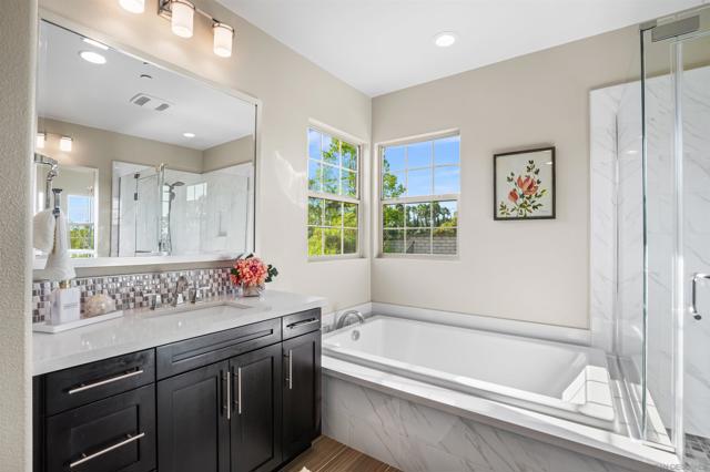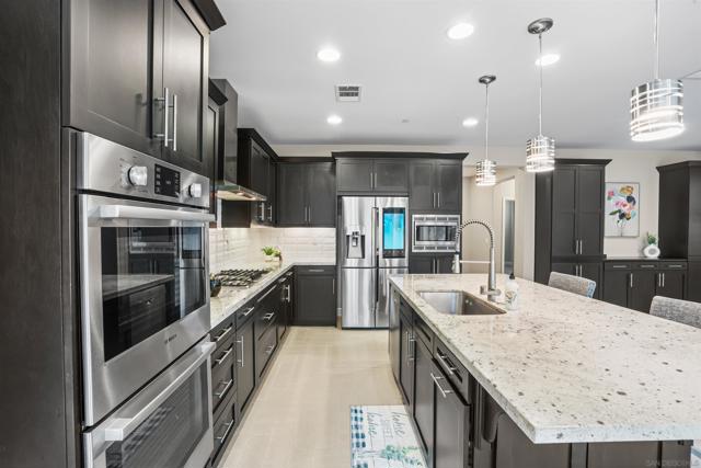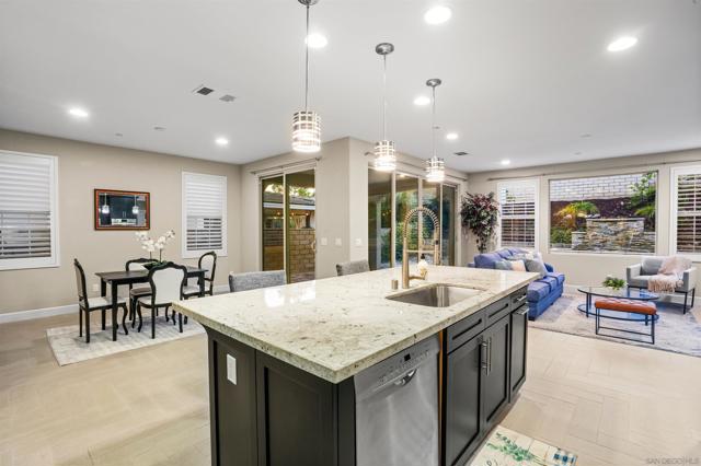 “Casabella Showstopper | Trophy Living in the Heart of Carmel Valley.” WHAT WE LOVE: Step inside and feel it. That punch-in-the-gut kind of “whoa” when your eyes catch the full line of sight — from the front door, across the herringbone-threaded tile floors, through the kitchen and living room, out to the covered patio and the backyard’s bubbling fountain and stone-laden Tuscan vibe. This isn’t a starter home. This is the one you build toward. A trophy home. With signature tall ceilings, dual-pane windows that mute the world and lock in the cool, and a layout designed for real life — plantation shutters in all the right rooms, a family room framed by a double-door slider and fireplace, a dining space with its own glass slider, an upstairs loft for movie nights, downstairs bedrooms for guests, home office or multigen living, and a soaking tub made for sunset skyshows. Welcome home. WHAT WE LOVE: (CONT...) Some homes look good in pictures. This one? It feels right the moment you walk in. Built in 2017 by Pardee Homes, this 2,849 sq ft 5BR stunner is tucked near the end of a quiet, no-through street in the sought-after Casabella community. With 2 bedrooms and a full bath downstairs, it's ideal for guests, in-laws, or flexible WFH living. The open-concept layout draws you into a gourmet kitchen with stainless appliances and rich countertops, flowing seamlessly into the great room and out to the private patio with a tranquil waterfall fountain — perfect for morning coffee or twilight wind-downs. Upstairs? It’s all about connection. A large central family loft anchors the space — your future sleepover zone, game-day hangout, or Netflix marathon hub. The primary suite lives in the quiet back corner with a luxurious soaking tub set perfectly to soak in the colors of a Carmel Valley sunset. Add in the upstairs laundry room (because stairs and hampers don’t mix), zoned A/C, a fireplace, attached garage, and you’ve got functionality to match the beauty. Outside, you’re in the heart of everything: Award-winning schools, Pacific Highlands Ranch trails, Village shops, dining, and only minutes to the coast. HOA is just $221/mo, with low Mello-Roos, and access to community pools and parks.