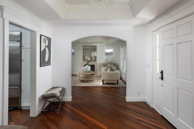 Located on a premier street in sought-after Old Los Altos, this beautifully updated 3-bedroom, 2-bath home offers bright, single-level living with timeless appeal. Freshly painted interiors and refinished hardwood floors create cohesive aesthetic, while tray ceilings, crown moldings, and skylights add architectural character throughout. Formal living and dining rooms are complemented by a well-appointed kitchen with granite slab counters, stainless steel appliances, and island seating. The spacious primary suite opens to the rear yard and features a travertine bath with new freestanding tub and separate shower. Two additional bedrooms provide flexibility for guests or office needs. A charming rear yard and detached oversized garage with rear alley access complete this exceptional offering just blocks from downtown Los Altos and top-rated schools.