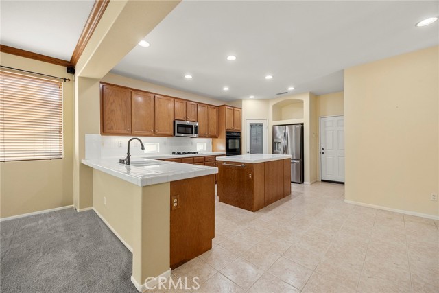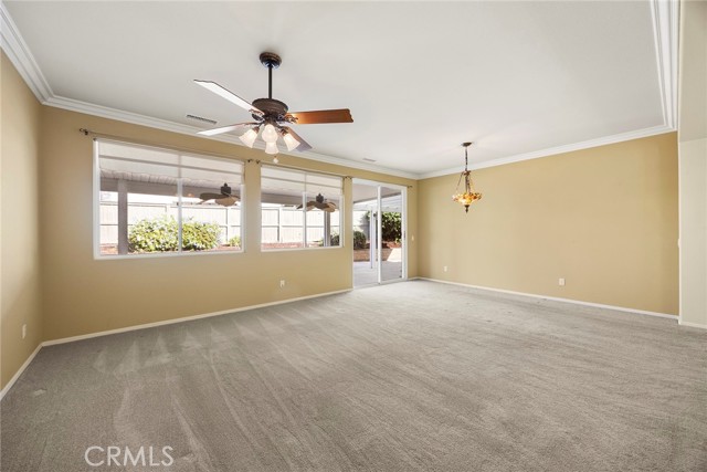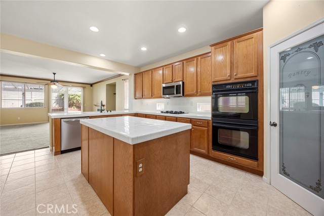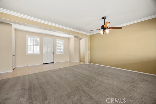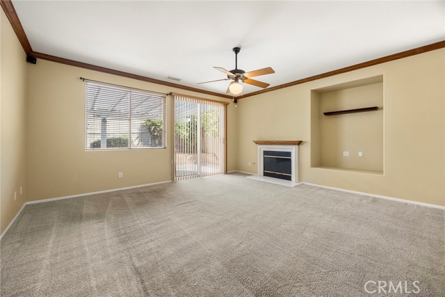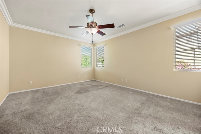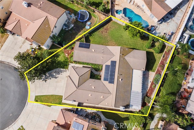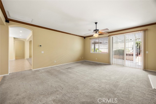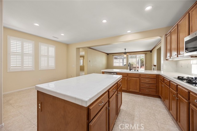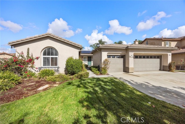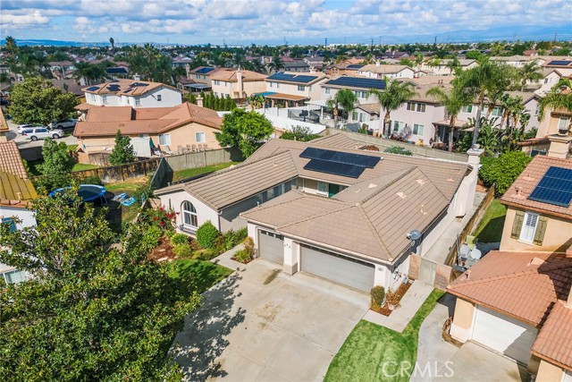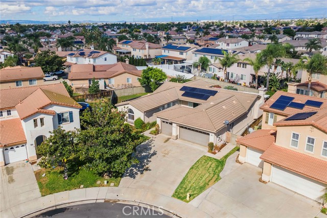 Welcome to this beautifully maintained single-story home nestled in the heart of Eastvale, perfectly situated at the end of a quiet cul-de-sac. Offering 2,591 sq ft of living space on a spacious 10,019 sq ft lot, this 4-bedroom, 2-bathroom home combines comfort, convenience, and elegance. Enter through a lushly landscaped courtyard into the formal entryway, which opens to a large living and dining room with views of the covered patio and private backyard—ideal for entertaining or relaxing. The separate family room features a cozy fireplace and seamlessly connects to the gourmet kitchen and casual dining nook. The spacious kitchen boasts a gas built-in cooktop, double self-cleaning ovens, microwave, refrigerator with ice maker (included), kitchen island, breakfast bar, walk-in pantry, and ample counter space. Enjoy the convenience of an indoor laundry room complete with a sink, cabinets, washer, and dryer—all included. The private master suite offers direct access to the backyard patio, a luxurious bathroom with a Jacuzzi tub, separate shower, double vanity, private toilet area, and a large walk-in closet. Three additional guest bedrooms share a full bathroom with a shower-over-tub. Additional features include: 10-foot ceilings with crown molding, Ceiling fans throughout,3-car attached garage. Located close to top-rated schools, shopping, public transportation, and major freeways. This is the single-story gem you've been waiting for—don't miss your chance to own this wonderful Eastvale home! Home has leased solar system that can be assumed for 10 years, removed bu solar company or purchased from solar company. Property listed as 3 bedroom in public records but is a 4 bedroom.