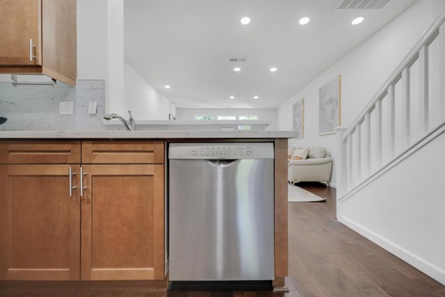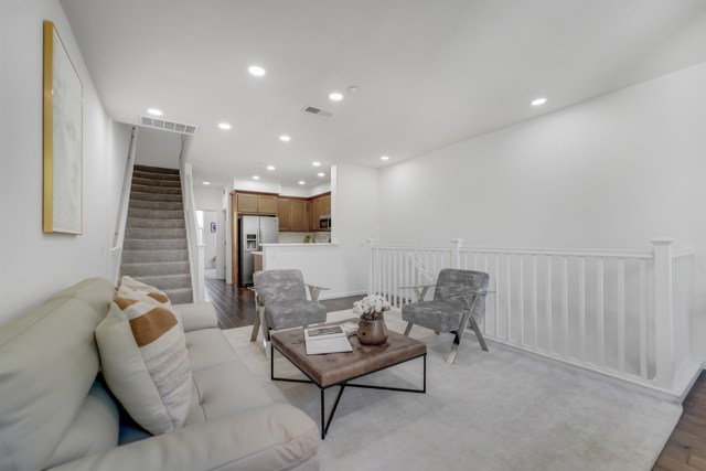 COMMUTER'S DREAM HOME. LOCATION + HOUSE!!! Bright and airy living space with modern floor plan. HIGH CEILING and EXPANSIVE FAMILY ROOM, with a bonus reading area, also perfect as an office on ground level. The open-concept layout features a spacious living and dining area filled with natural light, while the tastefully updated kitchen sparkles with ELEGANT QUARTZ COUNTERTOPS AND BACKSPLASH, stainless steel appliances, a large pantry, breakfast bar, and abundant cabinetry—perfect for everyday living and entertaining. ONE BEDROOM WITH FULL BATHROOM ON SECOND LEVEL, ideal for multi-generational living. Luxurious primary suite boasts dual closets, a walk-in closet, and an en-suite bathroom with dual vanities. Additional highlights include recessed lighting, dual-pane windows, and plentiful storage cabinets. The attached TWO CAR SIDE-BY-SIDE GARAGE provides ample parking. LOW HOA. Close to Berryessa BART, Light Rail, major freeways, groceries, shopping, dining, parks, and top Silicon Valley employers. BEST VALUE FOR YOUR MONEY.