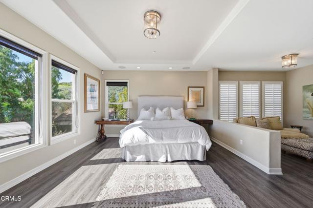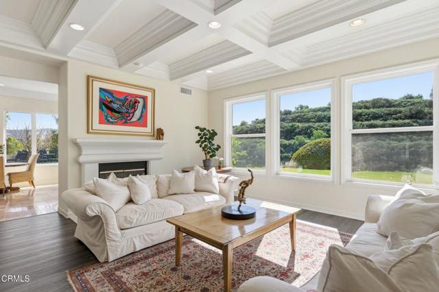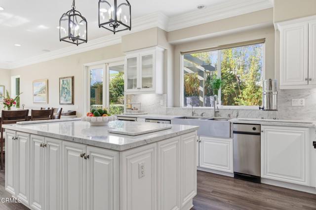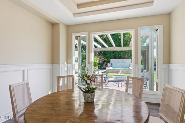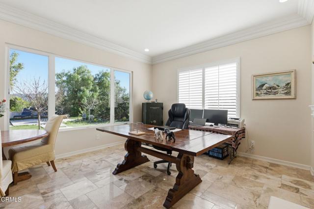 Tucked away in a private double cul de sac location, this 5 Bd/4.5 Ba home is uniquely situated on 1.1 acres in the sought after Solano Estates in the Santa Rosa Valley. Location is key as this property enjoys expansive vistas in both the front and back. Gorgeous verdant views delight the eye from every vantage point. Step into a dramatic light filled foyer & grand staircase. The formal dining room opens to a refreshing plunge pool with splashing waterfall. The open kitchen is a delight; white & bright with *stainless steel appliances *pantry *built-in microwave *6 burner cooktop *large island *Carrera Marble countertops *wine fridge *oversized stainless-steel farmers sink. The breakfast nook opens to another soothing waterfall feature & BBQ. There is an en suite bedroom downstairs. Upstairs wake up to inspiring views in the primary bedroom with sitting room *2 spacious closets *spa like bath with *dual sinks *jetted tub *vanity *private commode *separate shower. Plus 3 additional bedrooms up plus large bonus/media room currently utilized as a 6th bedroom. This estate has expansive grounds, with canyon views, avocado & fruit trees, plunge pool, waterfall features with ample room for miniature golf, orchards, or your own private park! This home is truly an oasis from the hustle bustle of daily life. New generator.