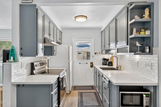Updated Marina Village Penthouse-Single Story 2 Bedrooms 1 Bath located on the 2nd floor. New laminate flooring throughout, new paint, scraped/textured ceilings, upgraded cabinets with Quartz countertops in Kitchen & bath, tiled backsplash, truly Move-In Ready!!! Close to Community Pools, enjoy cool coastal breezes, walking distance to Sea Bridge shops/restaurants, and just minutes to Silver Strand, Hollywood Beach, Oxnard Shores and Channel Islands Harbor. Great Opportunity for Investment or 1st Time Buyers.