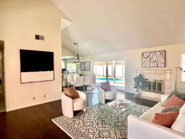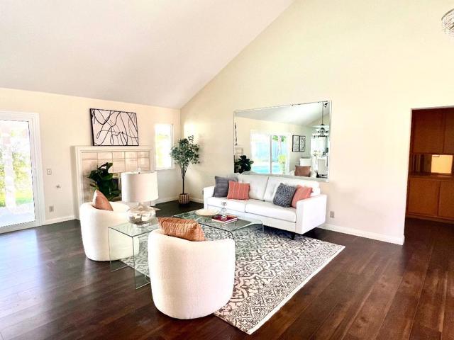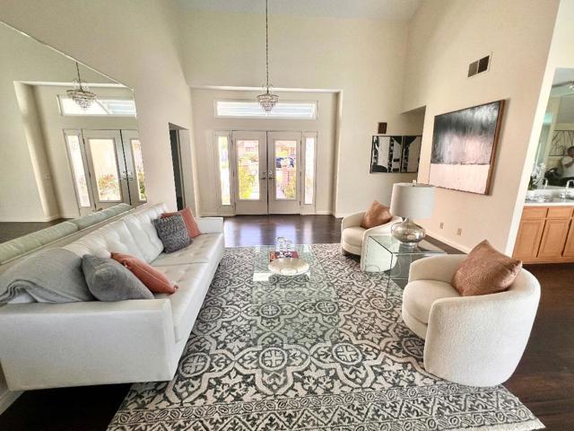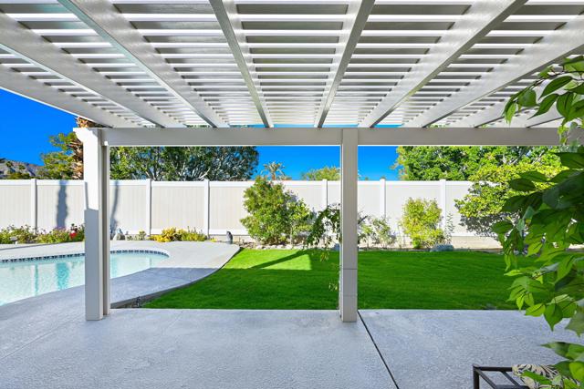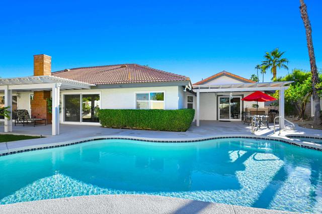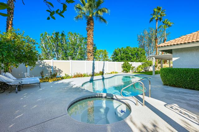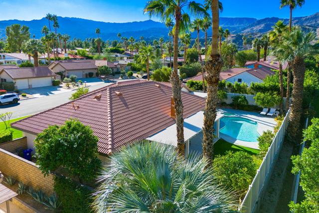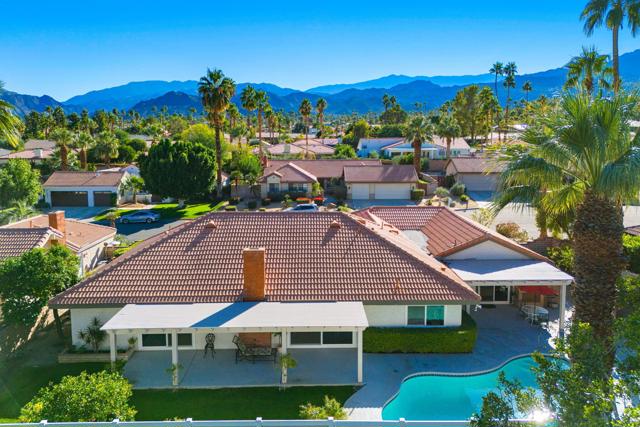 A genuine SHOWSTOPPER! The home has been impeccably cared for. Three car garage, pool & spa and a lovely landscaped front and back yard. This home boasts a newer kitchen, newer windows and sliders, newer HVAC, newer flooring and a beautiful and private back yard with two patios along with newer Aluma wood awnings perfectly suited for quiet relax time or even fun entertainment with friends and family! The property has panoramic mountain views surrounding the home. Majestic bliss best describes this home! A peaceful neighborhood with no HOA fees. Just a short distance to the wonderful restaurants and shopping on the beautiful street of El Paseo. This home is an enchanting paradise! Staged Furnishings.
