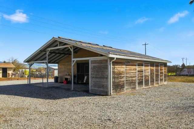Step into your own private oasis on 2.4 acres, where luxury meets tranquility. This custom-built 2002 home offers the perfect blend of comfort and functionality. Entertain poolside, relax in the hot tub, or enjoy your own fruit orchard with peaches, oranges, lemons, avocados, pomegranates, and plums. Collect fresh eggs from your chickens! Equestrians will love the fully equipped 4-stall horse barn, while car enthusiasts will appreciate the 1,400 sq.ft. , detached 4-car garage. A half-moon driveway adds elegance, and the 36-panel paid solar system means virtually no electric bill.