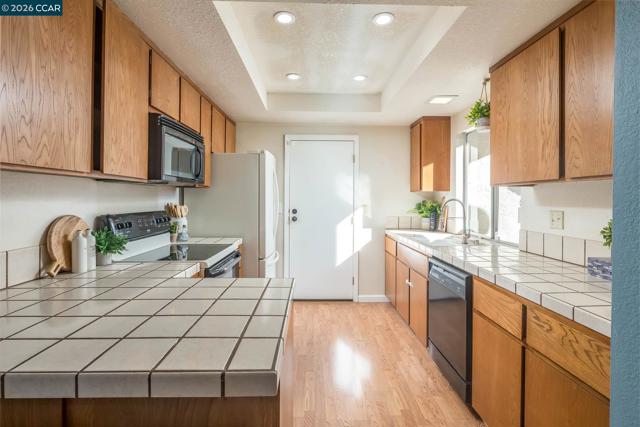 A RARE value find in Brentwood, this cute single-story duet property is 975sqft with 2 spacious bedrooms and 1 full bathroom plus NO HOA. The best perk is the unique almost 5,000sqft corner lot with plenty of privacy and space in both the front and backyard, plus the large attached 2 car garage with epoxy flooring. Walking inside, you're greeted by a large open living & dining combo space with great natural light and fireplace. Perfect for cozy nights and summer days! The kitchen is just the right size with tile countertops, recessed lighting, fridge included, and a window above the sink overlooking the front yard space. The two spacious bedrooms both include great large closets and fresh paint. The backyard includes a massive covered patio perfect for enjoying our wonderful year round weather plus large backyard area with fresh mulch and shed. Also note there is all new insulation in the attic space. Refrigerator, Washer, and dryer all included as well! This home has so much to offer for the price- come see it for yourself!