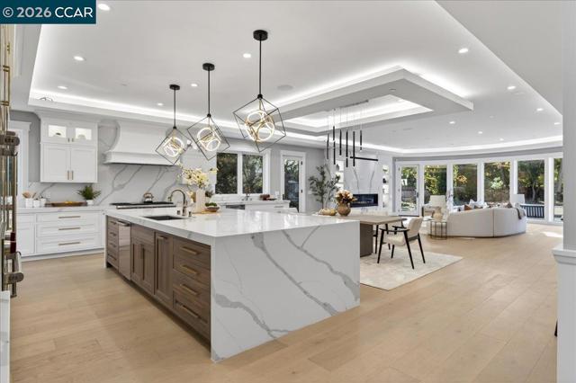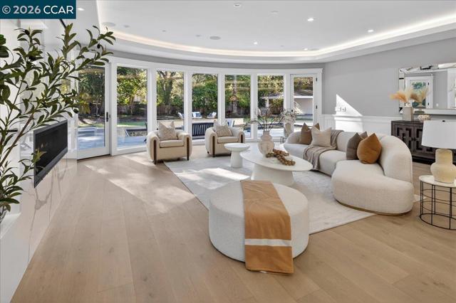 Stunning solar-powered estate built in 2023, offering 8,297 square feet of luxurious living space on a flat acre in the prestigious Atherton. This exceptional residence features 7 spacious bedrooms and 7.5 baths, complemented by a separate guest house with 2 bedrooms and 2 baths—perfect for extended family, visitors, or multigenerational living. A secure gated entry, elegant circular driveway, and graceful fountain set a grand first impression. Step inside to a dramatic curved staircase that ascends to the opulent primary suite, complete with a cozy fireplace and a spa-inspired bathroom retreat. The lower level is a private oasis, offering theater, sauna, and temperature-controlled wine cellar. The heart of the home is the gourmet chef's kitchen, equipped with top-tier appliances, a dedicated prep kitchen, and a massive 12-foot island that flows seamlessly into the inviting family room—ideal for both everyday living and sophisticated entertaining. Ideally positioned between vibrant San Francisco and the innovation hub of Silicon Valley, this property is also conveniently close to Stanford University and leading tech campuses, offering the perfect blend of tranquility and accessibility in one of America's most exclusive zip codes.