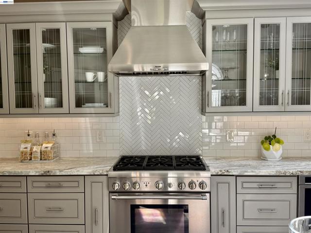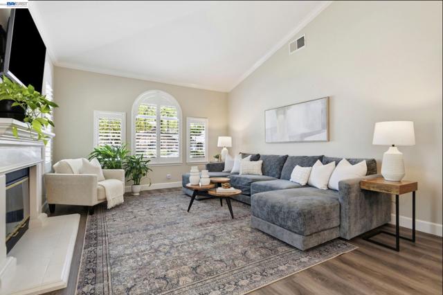 Instantly appealing single-level Shapell home in centrally located Danville, thoughtfully remodeled and expanded with impressive high-end finishes. Bright, open layout with seamless flow, high ceilings, & no wasted space. A truly showstopping kitchen features custom wood cabinetry, dramatic waterfall-edge quartz island and countertops, chef’s-grade stainless steel appliances, a walk-in pantry, and skylights providing abundant natural light. Spa-inspired baths are appointed with rich mosaic & subway tile, designer fixtures, and elegant lighting. The professionally landscaped backyard is ideal for entertaining, featuring a slate patio and walkways, a shade trellis, and conversation areas. Ideally situated in the highly sought-after, established Diablo Highlands neighborhood, this location offers a rare blend of convenience and community charm. Moments from freeway access and the upscale shops and dining at Livery Marketplace and Downtown Danville, this special enclave is defined by mature, tree-lined streets and a timeless, welcoming feel. Enjoy easy access to open space and scenic trails, along with community amenities including a pool, tennis courts, and a dog park. All of this, combined with proximity to highly regarded schools, creates an exceptional "turnkey" lifestyle.