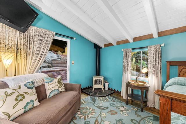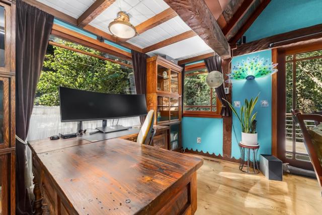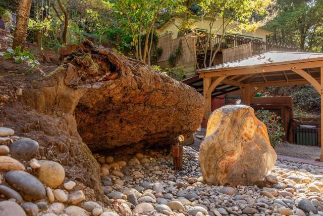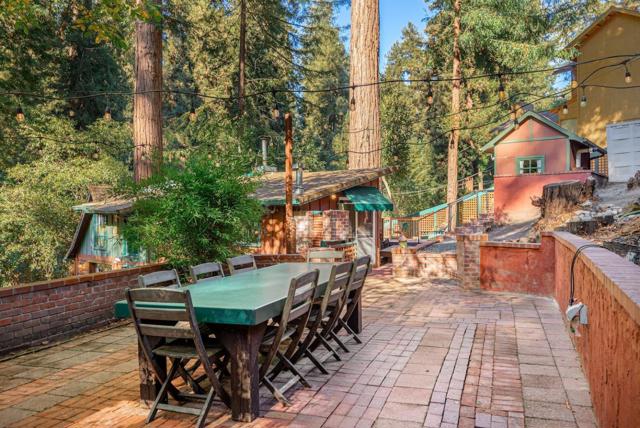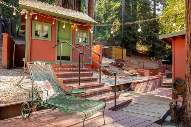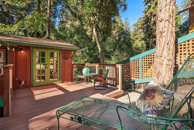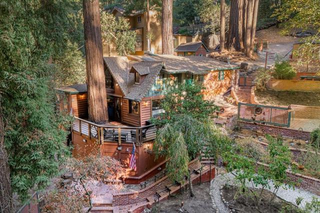 Nestled in the redwoods of Aptos, CA, this magical retreat offers a two bedroom two bathroom main home with two charming guest cottages on over 20,000 sq. ft. of land spanning three APNs. Just minutes from Santa Cruz's finest dining and shopping, the property combines tranquility with accessibility. The home showcases vaulted wood ceilings, hand-sawn beams, and beautiful reclaimed wood flooring, adding warmth and character to the airy, open layout. Expansive windows capture natural light and frame stunning views of the surrounding forest. High-end global tile work and designer lighting bring sophistication to every room. Outside, a spacious deck, patio, and meandering garden paths invite you to unwind and enjoy the beauty of nature. With its seamless blend of rustic elegance and modern comforts, this property is an idyllic sanctuary that offers both privacy and proximity to local amenities.