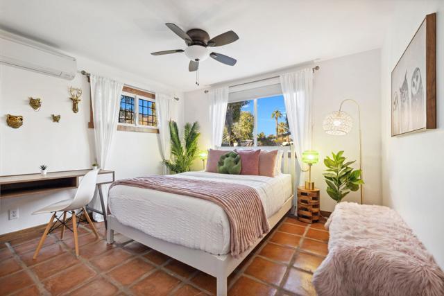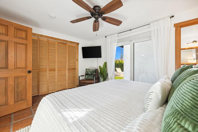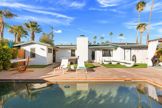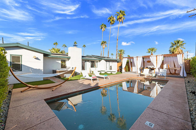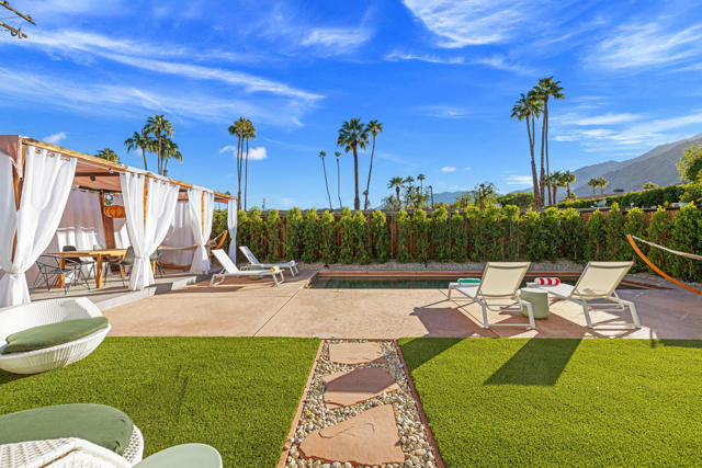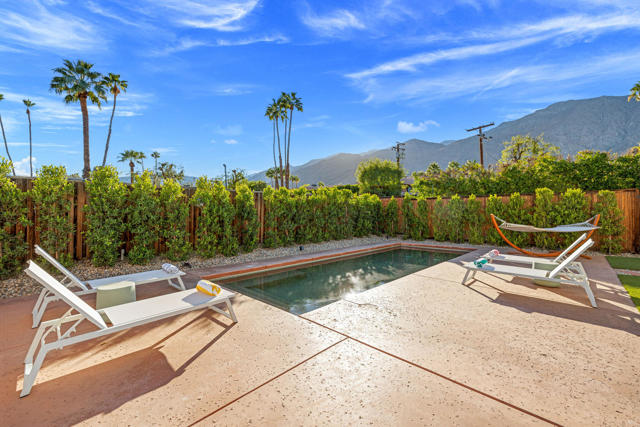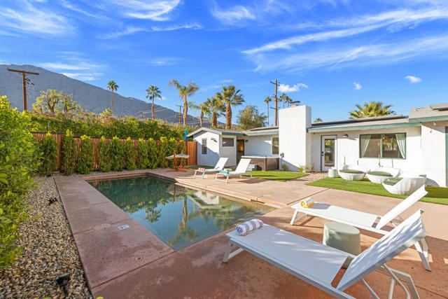 Rich in character and designed for effortless desert living, this Spanish ranch style home offers a rare blend of charm, comfort, and privacy in the heart of Palm Springs. Whether enjoyed part-time or full-time, it feels like home the moment you step inside.The backyard is truly special, sun drenched and private, with a sparkling pool, chic cabana for al fresco dining or sunset cocktails, and dramatic mountain views that define the Palm Springs lifestyle. It's your own personal resort, ideal for entertaining, relaxing, and soaking up the sun.Inside, warmth and character meet a relaxed high desert aesthetic. A cozy fireplace anchors the living room, while the kitchen is designed for easy connection and effortless entertaining. The primary suite is a true retreat, featuring beautiful wood closet doors and direct access to a jetted hot tub just outside. Two stylish guest bedrooms and a vibrant guest bath add comfort and personality.The lot offers exceptional versatility, with a welcoming front garden, expansive pool and entertaining area, a west-side yard perfect for installing a bocce ball or planting a citrus grove, and a large east-side bonus yard ideal for building a casita/ADU, a pickle ball court, or your own custom outdoor escape, you decide.Located in the highly desirable Tahquitz River Estates neighborhood, this home is just a short walk to Townie Bagels and downtown Palm Springs. As a bonus, it is eligible for a City of Palm Springs short-term rental permit, offering the opportunity to Airbnb and offset ownership costs. Private, character-filled, and rich with outdoor space, located out of the wind and within walking distance of down town Palm Springs, this is an increasingly rare find i.Schedule your private showing today and experience this desert oasis for yourself.