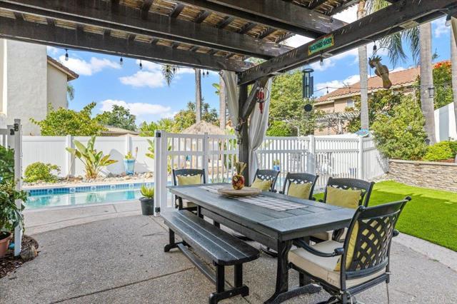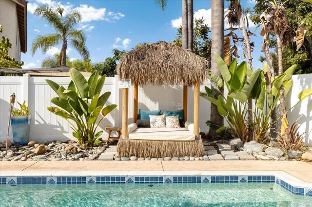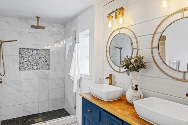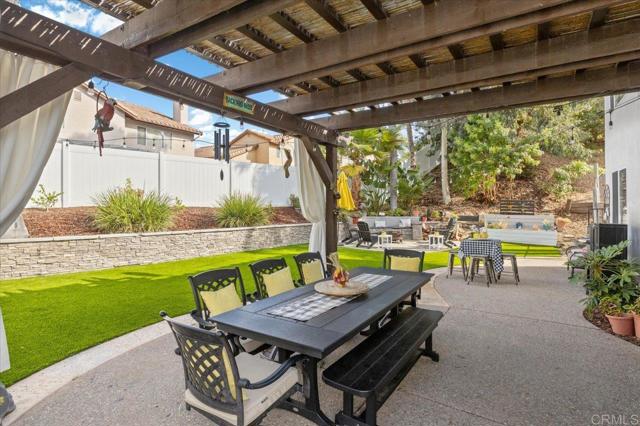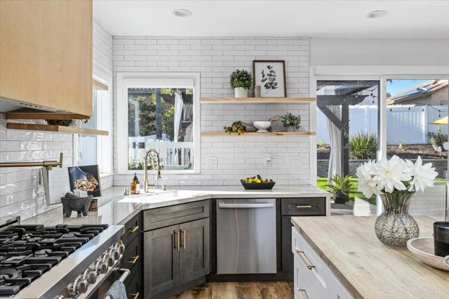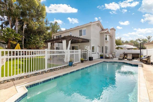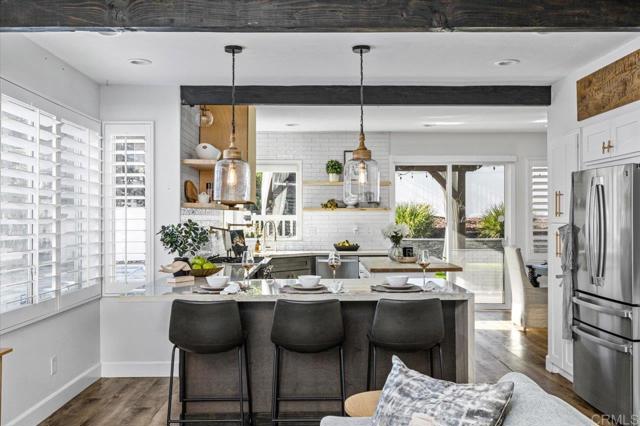 Welcome to this stunning, fully remodeled home in the sought-after Santa Fe Hills neighborhood! Nestled on one of the best cul-de-sac lots in the area, this home is sure to impress even the most discerning buyers. Step inside to discover a spacious, modern open-concept living and kitchen area, complete with gorgeous oversized Cali Bamboo vinyl plank flooring throughout. The gourmet kitchen is a true showstopper, with new appliances featuring luxurious Brazilian Quartzite countertops and a butcher block island. Every corner of this home has been meticulously upgraded, from the floating shelves set against striking counter-to-ceiling Spanish subway tile, to the sleek and sophisticated design. Why head to a coffee shop when you have your own cozy coffee/wine bar nook? The exposed wood beams and abundance of natural light create an inviting, airy atmosphere you'll never want to leave. A bedroom and full bathroom are conveniently located on the main floor—perfect for guests. Upstairs, a custom cable railing leads you to a converted loft space, ideal as a 5th bedroom, playroom, home office, or relaxation zone. Around the corner, you’ll find two additional bedrooms and the master suite. The master bedroom is a true retreat, with an entirely remodeled bathroom featuring a walk-in shower with a rain shower head, a custom hickory wood vanity with dual sinks, and plenty of room to spread out. Step outside to your own private oasis, where no detail has been overlooked. A large pergola with lounge seating and BBQ area creates the perfect setting for outdoor entertaining. On warm SoCal days, cool off in the private saltwater pool area with Tiki hut and outdoor shower, or pick fresh lemons from your own tree to enjoy a refreshing drink. As the sun sets, gather around the built-in fire pit, seamlessly blending into the beautiful 70+ feet of cultured stone rock wall. This home is an entertainer's dream! For those with a green thumb, numerous planter boxes offer the opportunity to grow your own fresh, delicious produce. You will find spacious parking in the front yard with plenty of room for your toys, or for the kids to play.