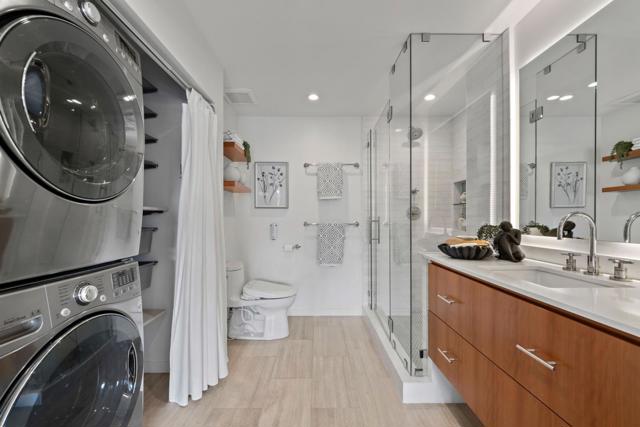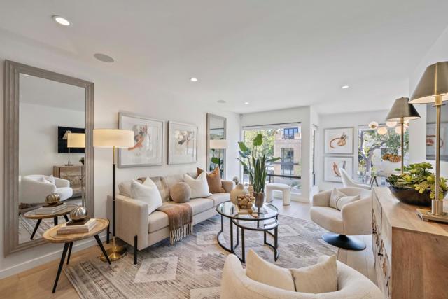 Beautifully reimagined with a stunning remodel in 2015. This sophisticated and contemporary condominium showcases premium craftsmanship and modern design ~ Nestled on a peaceful stretch of Bryant Street just three blocks from the energy of University Avenue. This residence offers light-filled interiors with wide-plank hardwood flooring, expansive floor-to-ceiling windows, and thoughtful details such as zoned radiant heat, motorized window shades, and integrated living-room speakers. The sleek chefs kitchen features custom cabinetry paired with Miele, Wolf, and Sub-Zero appliances. A retractable partition allows the dining area to convert into a private guest suite or expanded living space. The spacious primary bedroom includes custom built-ins and an adjoining bonus room ideal for a home office or nursery. Additional amenities include an in-unit washer and dryer, two secure underground parking spaces, and a dedicated storage closet. Perfectly positioned near Heritage Park, Whole Foods, the Caltrain station, and within the top-rated Palo Alto school district!