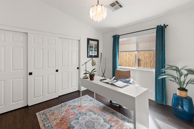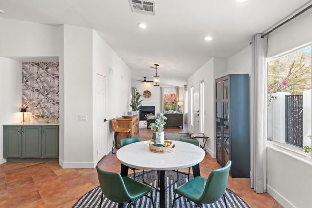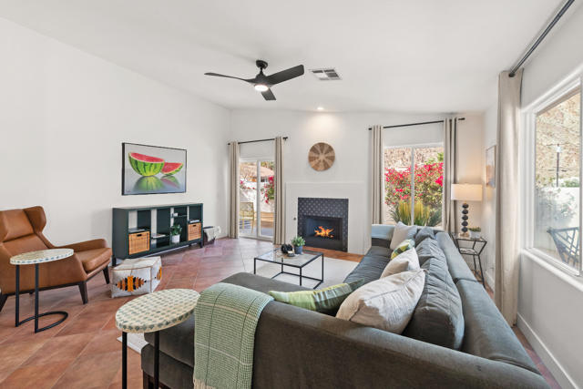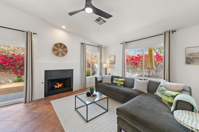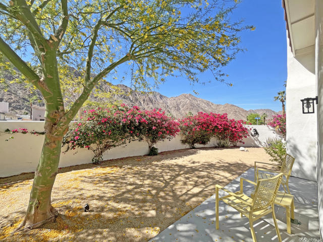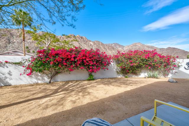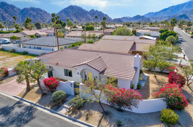 Located on a quiet corner lot in the scenic La Quinta Cove with DRAMATIC MOUNTAIN VIEWS, this exceptional, NEWLY UPDATED AND Partially FURNISHED HOME delivers the perfect balance of all the modern comfort and unparalleled desert charm. NO HOA, and no land lease. Whether you're looking for a full-time residence, vacation getaway, or investment property with steady revenue, this low-maintenance home checks every box. Built in 2002 and updated in 2025 inside and out with designer finishes.Stepping in from the charming gated courtyard you will enjoy an OPEN CONCEPT LAYOUT featuring vaulted ceilings with abundant natural light. The kitchen is a modern workspace with wood construction cabinetry, BRAND NEW ENERGY EFFICIENT STAINLESS STEEL APPLIANCES AND QUARTZ COUNTERTOP. It also features a wood paneled range hood and a long peninsula to provide greatest function and pleasing aesthetics at the same time. The floor plan offers easy flow through the dining and living areas which is great for entertaining. The bright living room is anchored by a cozy fireplace. From there, step outside through the sliding door to the west facing peaceful OUTDOOR SPACE that is sure to impress with breathtaking views framed by happy bougainvillea . There is ROOM FOR A POOL, or other personalized landscaping. The PRIMARY SUITE - also with direct access to the outdoors - is a nice retreat, complete with a stunning en-suite bathroom with OVERSIZED TILED WALK-IN SHOWER, all new fixtures and designer wallpaper along with a WALK-IN CLOSET. The TWO ADDITIONAL BEDROOMS offer flexibility for family life, guests or a home office with a shared full bath. Additional conveniences include an interior laundry room and an attached 2 car garage with storage space and extra outdoor space at the back of the garage. Electricity is provided by IID, known for lower utility rates. This highly sought-after La Quinta neighborhood offers quick access to excellent dining and entertainment opportunities in Old Town La Quinta. Enjoy the weekly farmers market, the thriving arts scene and the scenic HIKING TRAILS JUST 2 BLOCKS AWAY. Golfers will find themselves surrounded by world-class courses, and it's an easy drive to downtown Palm Springs, the high end shopping of Palm Desert's El Paseo or Indio's world famous music festivals! Adjacent empty lot is also for sale if you wanted to extend the property.