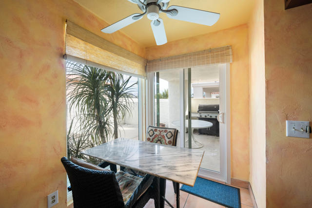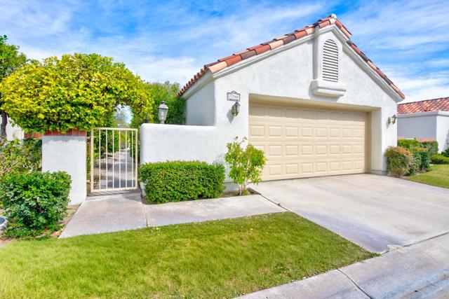 Located across from the world renown Indian Wells Tennis Gardens, this is resort living in the heart of the desert. This 3 bedroom/2 bath 1536 s.f. detached home with private yard is located in a quiet area of gated Desert Breezes. Kitchen has granite countertops and darkly finished wood cabinets. There is an area in the kitchen for casual dining. Additionally, there is a separate formal dining room as well. The primary suite is a private retreat with dual closets, double sinks and shower and commode area. This bedroom also hosts a small patio area for sipping on your morning coffee or enjoying the sun. There are 2 other bedrooms ... one of which would make a nice office or den. There is a hallway bathroom with tub/shower enclosure. Washer and dryer are located in the garage.Newer a/c unit.Desert Breezes is a very desirable community with 6 pools and 5 spas, tennis/pickleball courts and a clubhouse with a gym. The monthly HOA dues of $435 covers trash, common areas. Every few years the homes are painted so that all are uniform in color in the community. Desert Breezes is close to all amenities-- shopping, dining, schools and churches. Don't miss out on visiting this TURNKEY FURNISHED HOME!