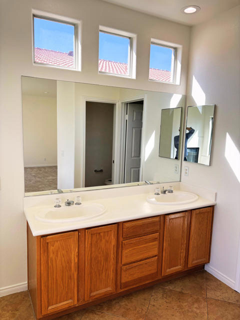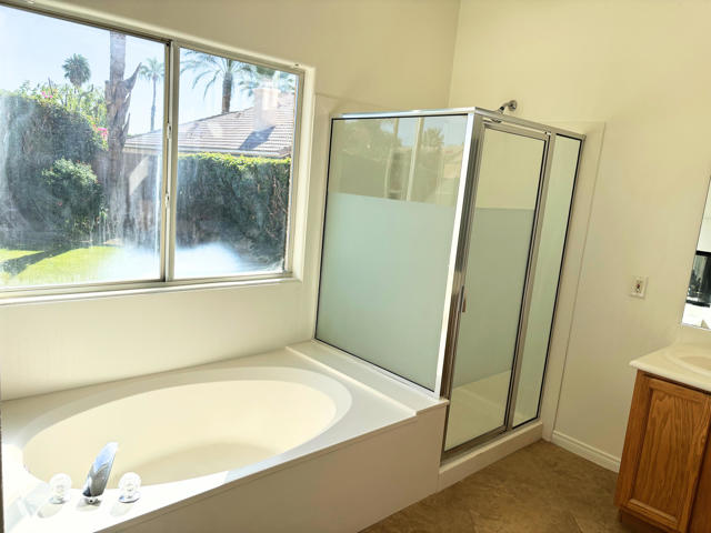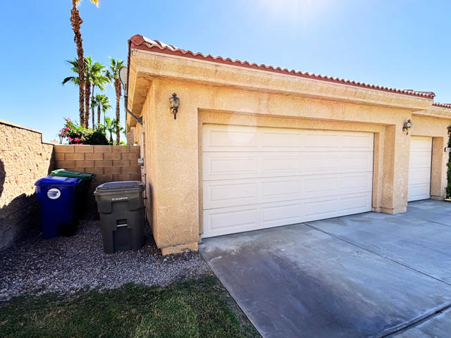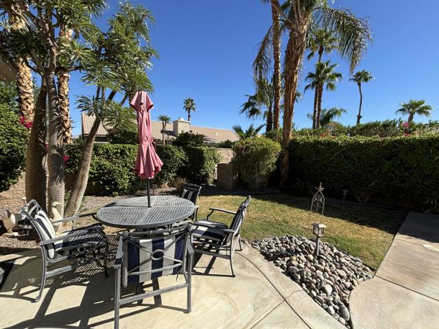 Welcome to the Quinterra Community, discover this beautifully maintained pool home nestled within a small gated community with a very limited number of homes, where comfort, privacy, and desert charm come together. This is a rare opportunity to own in one of La Quinta's most desirable and private neighborhoods, located within the highly regarded Desert Sands Unified School District.This inviting 3-bedroom, 2-bath residence offers approximately 2,100 sq. ft. of open living space and sits peacefully on a quiet cul-de-sac.Step inside to discover a bright, freshly painted interior with new carpet in all bedrooms and neutral tile flooring throughout the main living areas. The spacious great room features soaring ceilings, a striking stacked-stone fireplace, and large sliding doors that open to your private backyard retreat--perfect for seamless indoor-outdoor living.The kitchen offers ample cabinetry, a pantry, and a convenient breakfast bar that flows effortlessly into the dining and living areas.The primary suite is a true desert sanctuary, complete with its own fireplace, direct patio access, and a luxurious ensuite bath featuring a soaking tub, walk-in shower, dual vanities, and generous closet space.Step outside to your private oasis--a sparkling pool and elevated spa surrounded by lush landscaping and tall privacy hedges, ideal for relaxing or entertaining year-round.Additional highlights include a spacious 2-car garage with extra space for golf cart, indoor laundry room, and low-maintenance desert landscaping. Conveniently located near top-rated schools, shopping, and world-class golf and dining, this home perfectly blends resort-style living with everyday comfort.