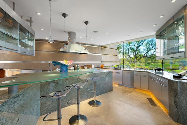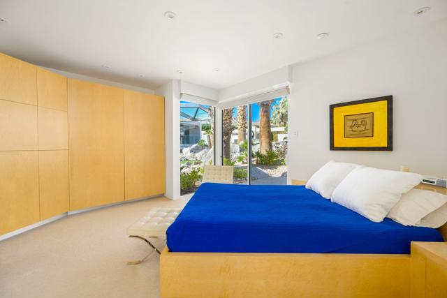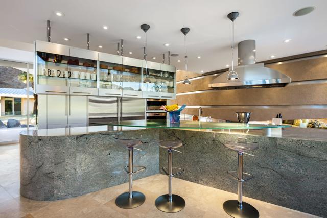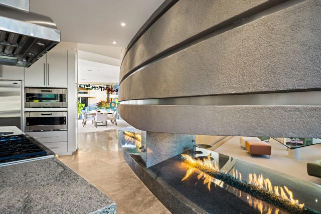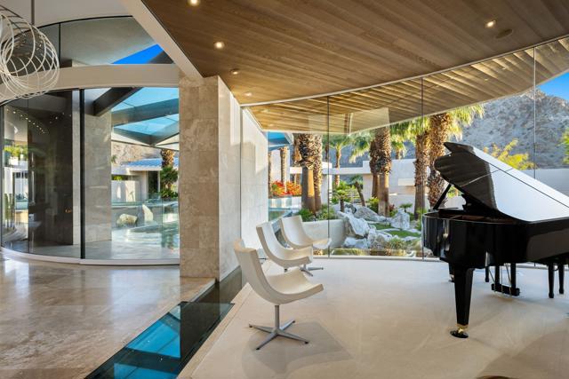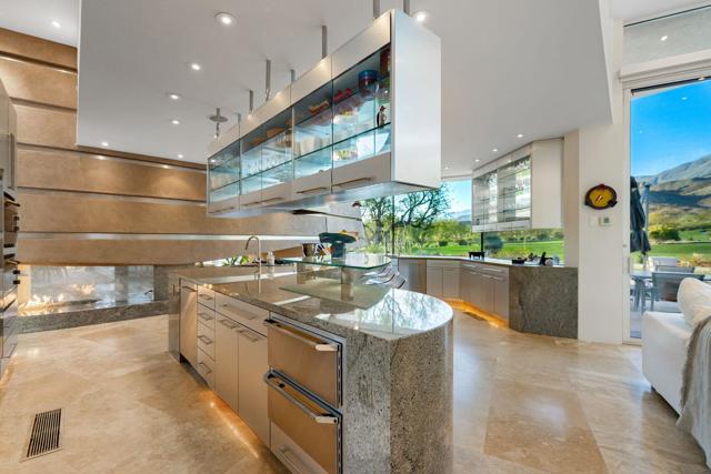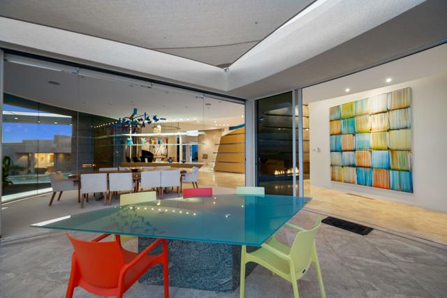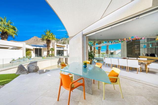 nestled within the prestigious enclave of The Quarry At La Quinta, stands a Guy Dreier masterpiece on a double lot (1.1 acres) with South views of holes 16th and 11th and majestic mountains. There are no houses on view now or ever. A stunning glass bridge leads you to the front door. The main house features 4 bedrooms with attached baths, unique powder room, study/office with a half bath, gym, formal dining with pocket doors to outdoor eating area. Gourmet kitchen with large island and attached service kitchen for large parties. Detached Casita with bedroom, bath and office/art studio. The newly landscaped Backyard offers large infinity edge pool, waterfall, firepit and fireplace. BBQ area. 3 car climate-controlled garage, storage room, golf cart garage, carport. WALLS OF GLASS enhance the amazing views from every rooms. New pool & spa heaters, lights, HVACs. Must see the home to fully appreciate how special this offering At The Quarry is. The Quarry is the only TOP 100 private Golf course in the Coachella Valley. Offered Furnished per inventory.