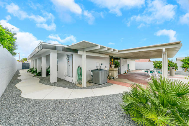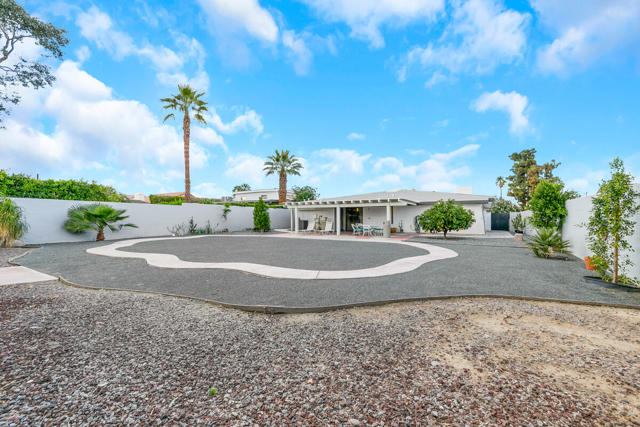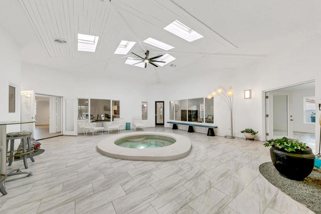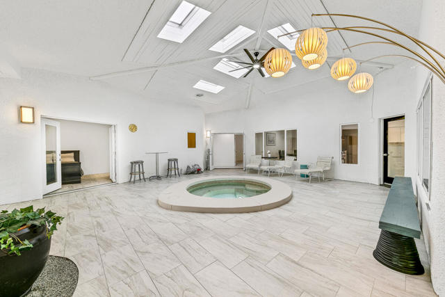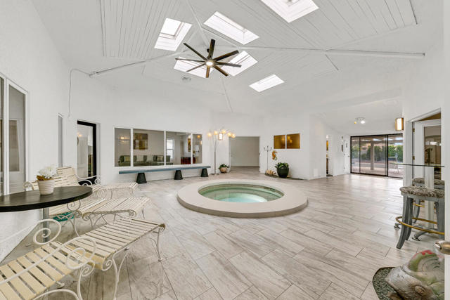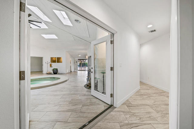 Welcome to this one-of-a-kind 3-bedroom, 3.5-bath custom-built residence, perfectly blending modern luxury with thoughtful design. Every detail of this home has been newly remodeled to offer comfort, style, and functionality--creating the ultimate indoor-outdoor unique desert living experience. NO HOAThe heart of this home is its dramatic interior atrium, featuring a 15-person jacuzzi spa that serves as the focal point for relaxation and entertainment. This indoor-outdoor oasis adds an additional 1,000 sq. ft. of luxurious living space.NEW chef's kitchen with beautiful cabinetry, modern appliances, and sleek finishesNEWly renovated bathrooms with premium fixtures and tile workAll NEW exterior windows for abundant natural light and energy efficiencyNEW tile flooring throughout for a clean, contemporary aestheticSpectacular NEW atrium skylights that brighten and warm the central living areaNEW custom-built side security gates for added privacy and peace of mindThree NEW French doors opening to serene outdoor spacesCommercial-grade large electrical panel for durability and future expansionFreshly painted exterior and interior--move-in ready!Outdoor shower--perfect for cooling off after enjoying the outdoorsLow-maintenance desert landscaping in both front and backyardsSeparate laundry room with ample storage and functionalitySpacious bedrooms including a huge primary suite featuring a walk-in closet that feels like a boutiqueEach bedroom enjoys no shared walls for exceptional privacy and opens directly to the stunning atrium. One of the three bedrooms can easily serve as a private in-law suite with its own entrance.The expansive 13,000 sq. ft. double-long backyard offers endless possibilities--ideal for an ADU, pickleball court, pool or all three! Enjoy the freedom to tailor this space to your lifestyle needs.The finished two-car garage includes a dedicated storage room, perfect for tools, hobbies, or organization.Built to last, this home features 2x6 perimeter construction--providing superior durability, insulation, and longevity. It's a home designed for decades of enjoyment and peace of mind.Every inch of this property showcases quality, creativity, and care. From the luxurious spa atrium to the expansive backyard, this home is a true masterpiece.The neighboring property is also for sale. Add a gate between the two and the options are limitless! *The Third bedroom (den to bedroom) was not permitted, but is to code & 1.5 bathrooms