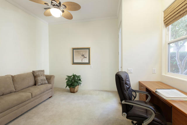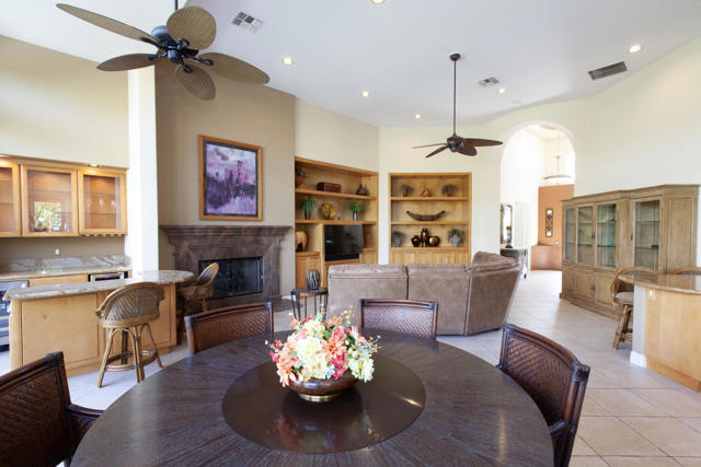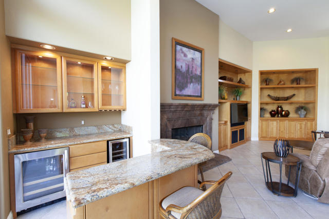 Enhanced Encanto I overlooking the 2nd fairway of the Jerry Pate course. This impressive expanded popular Encanto I plan has been modified & enlarged to create a spacious great room/formal dining area & impressive walk-in bar w/2 beverage refrigerators. Upgraded features boast voluminous ceilings; diagonal tiled floors; beautiful custom built-in cabinetry & fireplace w/raised hearth & mantel in spacious GR; ceiling fans in every room & designer paint& faux accents. The fabulous kitchen includes granite surfaces; pull-out drawers; stainless steel appliances w/ a 6 gas burner Viking cooktop. Owners will enjoy the expanded office/den w/built in desk, sofa pull out bed,& added windows for light. The wonderful tropical backyard makes this home complete w/pool/spa; extended patio with outdoor cooking station w/beautiful granite surfaces & bar seating area. The well maintained private exotic tropical backyard w/fruit trees makes this home complete. Additionally, the extra deep lot allows full sun on pool. Side yrd. w/sitting area & concreted walk-way. Garage offers epoxy floors; built-in cabinets & raised storage, Furnished per inventory.