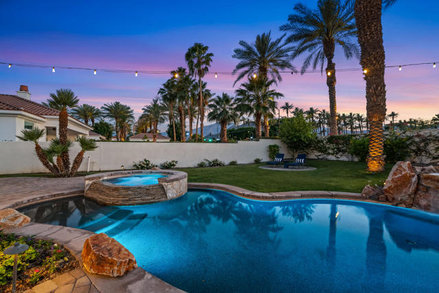 Price Improvement. This beautifully designed turnkey home in Mountain View Country Club offers the perfect blend of luxury, comfort, and convenience--ideal for full-time living or a seasonal desert retreat. Featuring 3 spacious ensuite bedrooms, 3.5 bathrooms, and a versatile bonus/game room, this residence is designed for effortless entertaining and relaxed living.The open-concept floor plan connects the updated kitchen, dining area, and inviting great room, creating a seamless flow for gatherings large or small. The kitchen shines with sleek quartz countertops, modern appliances, and counter seating at both the island and bar--ideal for casual dining. The wet bar has been beautifully updated with a stainless-steel sink, wine refrigerator, and a stand-alone Scotsman ice maker for the ultimate hosting experience.The primary suite is a true retreat with a private sitting area, spa-like bath, dual walk-in closets, and direct patio access. Two additional ensuite guest rooms are located on the opposite side of the home, providing privacy and comfort for family and visitors.Step outside to your private backyard oasis, complete with a PebbleTec pool and spa with waterfall feature, built-in BBQ, EVO hibachi grill, fire pit, and space for outdoor games--all surrounded by breathtaking Santa Rosa Mountain views. Enjoy your morning coffee in the front courtyard overlooking the 8th green, or unwind by the pool as the sun sets.This home is being sold fully furnished and move-in ready, including golf cart, bikes, pool table, ping pong table, Smart TVs, and more--everything you need to start living the resort-style desert lifestyle immediately.Additional upgrades include integrated surround sound, custom kitchen island, custom media cabinetry, epoxy garage floors, and a garage mini-split system.Located inside the prestigious Mountain View Country Club, residents enjoy access to an Arnold Palmer Signature golf course, tennis, pickleball, bocce ball, fitness center, clubhouse dining, and vibrant social events.This is resort-style desert living at its finest--move in, relax, and start enjoying all that La Quinta has to offer.