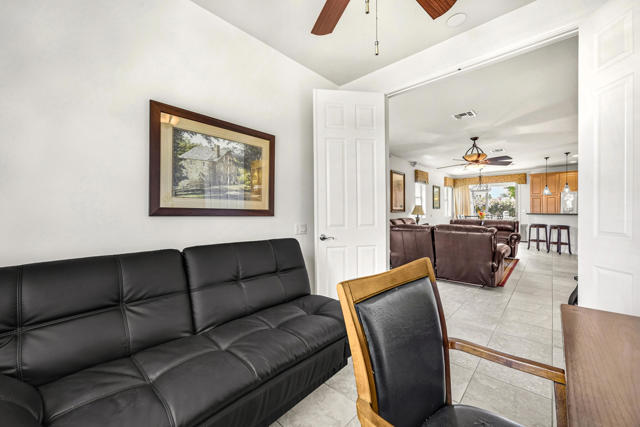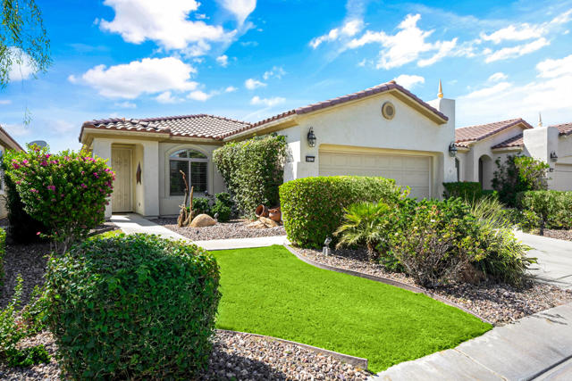 Discover easy desert living in this San Ysidro floor plan offering 1,463 sq ft (EST.) of well-designed space. Built in 2004, it features tile flooring in the great room, den, bathrooms, kitchen, and hallways for elegance and low maintenance. On a desirable south-facing lot, you'll enjoy abundant natural light and serene backyard views with plush grass. This house is ideal for relaxing or entertaining. The open layout flows seamlessly with a well-equipped kitchen, a cozy living area, and a dining space perfect for gatherings. In the sought-after Sun City Shadow Hills community, you'll access premier amenities including golf courses, pools, fitness centers, and a vibrant social scene. Don't miss out on the opportunity to make 80323 Avenida Linda Vista your home sweet home.