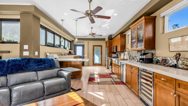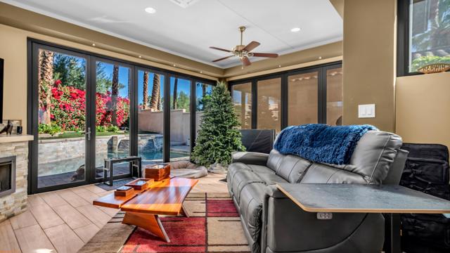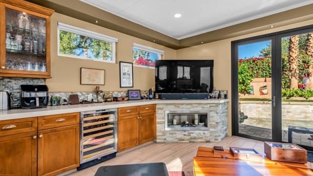 Welcome to your private desert retreat located in the prestigious Motor Coach Country Club. This beautifully appointed 1-bedroom, 1-bath residence offers the perfect blend of comfort, style, and upscale indoor-outdoor living. Enjoy a spacious private bedroom designed for relaxation and comfort, along with a bathroom. The home features a full gourmet kitchen with stainless steel appliances and a wine refrigerator. The living area is highlighted by large sliding glass doors that flood the space with natural light and create seamless access to the outdoor entertaining area. A cozy fireplace adds warmth and charm to the main living space. Step outside to your own private resort-style oasis featuring a pool and hot tub, built-in BBQ, and gas-powered pizza oven--perfect for entertaining year-round.Whether used as a full-time residence or a luxurious getaway, this property offers privacy, comfort, and the signature lifestyle of Motor Coach Country Club.