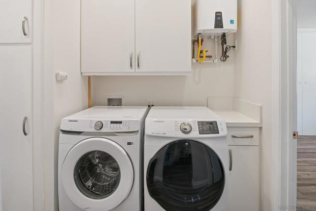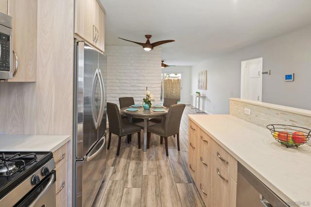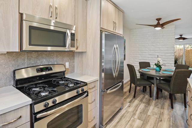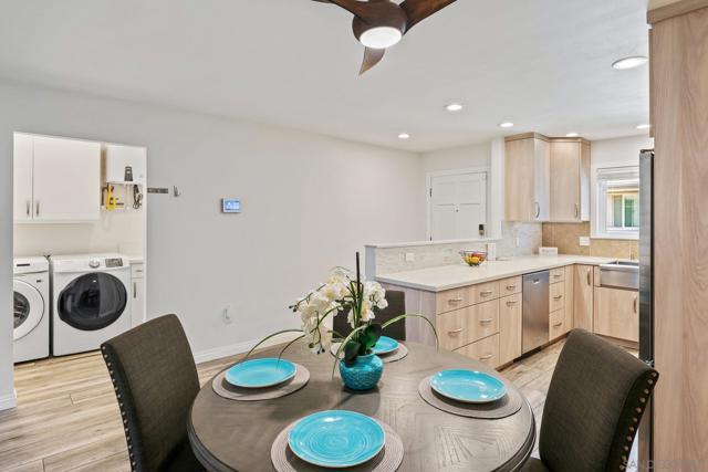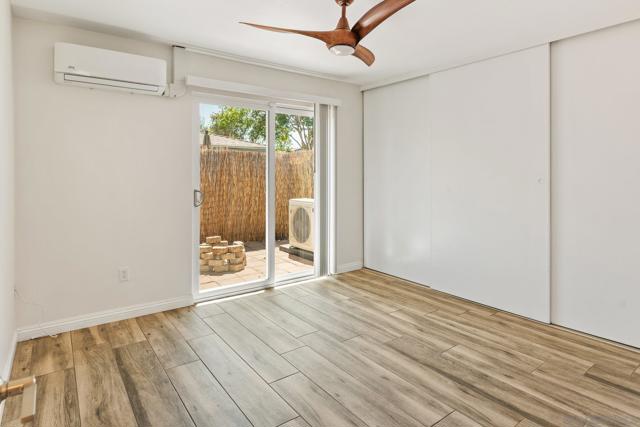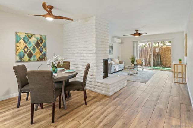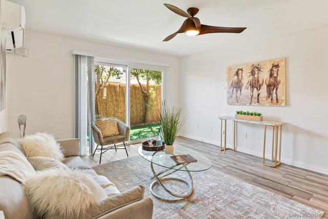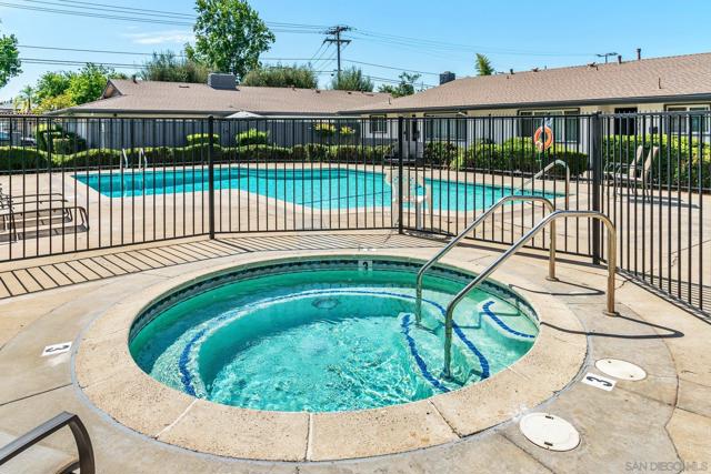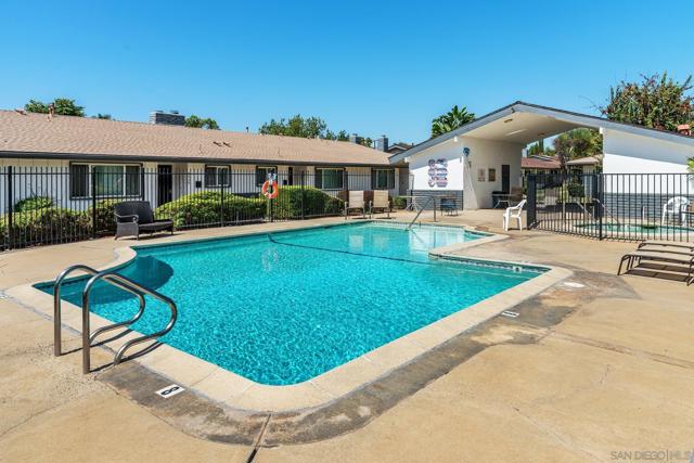 Welcome home to this beautiful single-level, end-unit condo offering 2 bedrooms and 2 full bathrooms in a desirable Escondido community. Thoughtfully updated and move-in ready, this home blends comfort, style, and convenience. Inside, you’ll love the modern kitchen featuring custom cabinetry with slide-outs, quiet-close drawers, storage, and stainless steel appliances. Nearby, the hall hosts the full-size washer and dryer, a linen closet, and an instant water heater for added convenience. The spacious primary bedroom includes a beautifully updated bath with a walk-in shower, while the second bedroom and bath provide plenty of flexibility for family, guests, or a home office. The open living and dining area is warmed by a cozy fireplace situated perfectly between the spaces, creating an inviting atmosphere for gatherings. Stay comfortable year-round with mini-split systems in the living room and both bedrooms, along with elegant ceiling fans throughout. Step outside to enjoy your private patio, perfect for morning coffee or evening relaxation. Additional highlights include one assigned parking space in a shared garage tucked away at the back of the community, plus access to a community pool and spa—the ideal place to unwind and enjoy Southern California living. VA approved community! The spacious primary suite includes a beautifully updated bath with a walk-in shower, while the second bedroom and bath provide plenty of flexibility for family, guests, or a home office. The open living and dining area is warmed by a cozy fireplace situated perfectly between the spaces, creating an inviting atmosphere for gatherings. Stay comfortable year-round with mini-split systems in the living room and both bedrooms, along with elegant ceiling fans throughout. Step outside to enjoy your private patio, perfect for morning coffee or evening relaxation. Additional highlights include one assigned parking space in a shared garage tucked away at the back of the community, plus access to a community pool and spa—the ideal place to unwind and enjoy Southern California living. VA Approved Community!