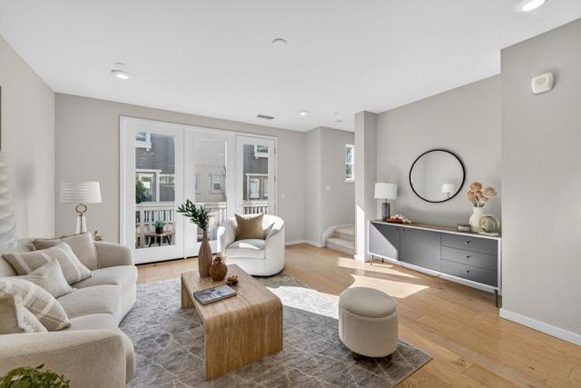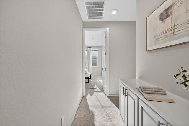 Welcome to this beautiful townhome in the sought-after the Vale community of Sunnyvale, featuring 3 beds and 3.5 baths. Offers serene surroundings with abundant natural light throughout.with a ground-level suite offering large windows, a walk-in closet, and a bath with stall shower-ideal for extended family. The second level showcases an open floor plan with a spacious living room, dining area, and kitchen, enhanced by abundant natural light from large windows. Indulge in outdoor living on a private balcony, as abundant natural light floods the interior, creating an inviting ambiance. The modern kitchen features a large island quartz countertops, stylish tile backsplash, stainless steel appliances, and ample white cabinetry. A laundry room and half bath on this level add convenience. The third level with new carpet throughout hosts the two en suite with high ceilings, bright windows, and an Elfa walk-in closet. The en-suite bath includes a double vanity with quartz countertops. Additional highlights include an attached two-car garage. The Vale community offers parks, playgrounds, and a clubhouse. Conveniently located near major tech companies, restaurants, shopping, groceries, and with easy access to Highways 101, 237, and Lawrence Exwy. Do not miss this great opportunity!