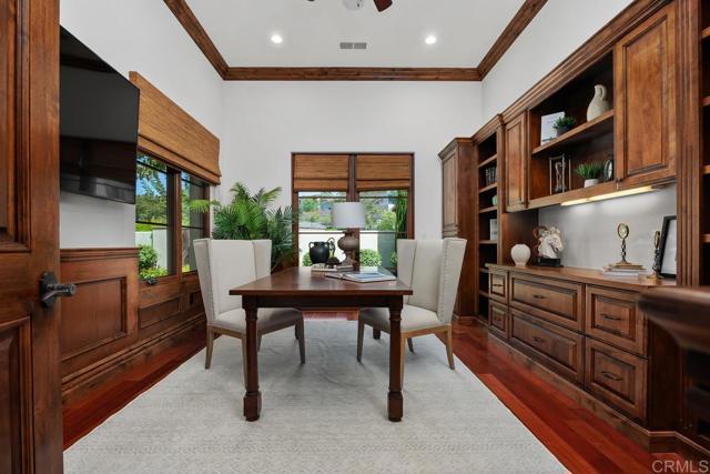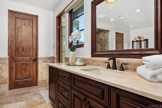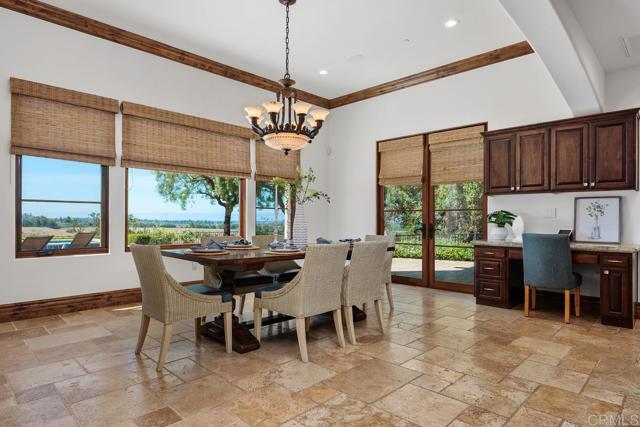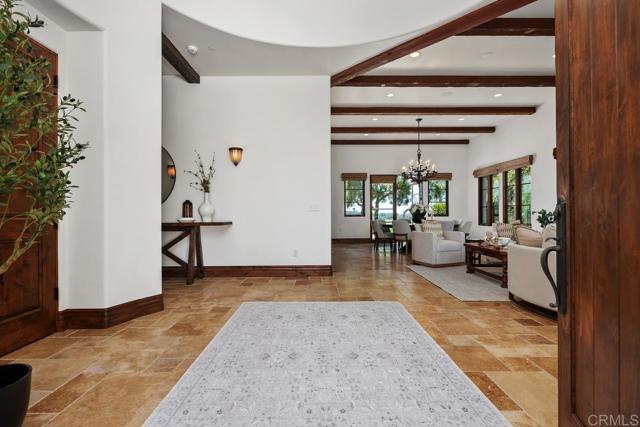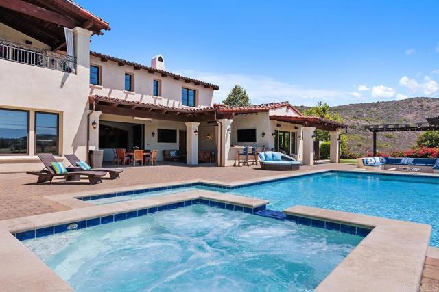 Elevated Living: Welcome to your private sanctuary in the rolling hills of Santaluz where panoramic vistas stretch for miles and luxury meets everyday ease. This custom-built estate offers a lifestyle of comfort, elegance, and connection in one of San Diego’s most sought-after- guard-gated communities. As you enter the gated motor court, you are greeted with a serene retreat that has something for everyone. This is a home where design and quality were thoughtfully curated—where daily stresses fade, laughter fills the air, and lifelong memories are made. The formal living and dining rooms provide a refined backdrop for entertaining while the chef’s kitchen - with expansive island, and walk in pantry and casual dining nook – flow seamlessly into the great room. Stacking vanishing doors connect indoor and outdoor spaces, opening to a covered loggia and fully equipped outdoor kitchen. Sport and movie enthusiasts will love the state-of-the-art home theater and adjacent entertainment lounge area and bar. The richly paneled home office, complete with built-ins and a private entrance is ideal for today’s work-from-home lifestyle. The main level primary suite is a tranquil escape, featuring a luxurious bath, an oversized walk-in closet, and a secluded patio with spa. A secondary en-suite bedroom is also located downstairs. Upstairs, three ensuite bedrooms join a guest casita with separate entrance, perfect for visitors or mulit-generational living. The backyard is an entertainer’s dream with an inviting pool and spa, sunken fire pit lounge, sport court and putting green -all offering endless fun for all ages. The four-car garage with built-in storage system provides organization for the gear and toys that accompany an active lifestyle. Your environment reflects your lifestyle and this one-of-a-kind home is paradise waiting for you.