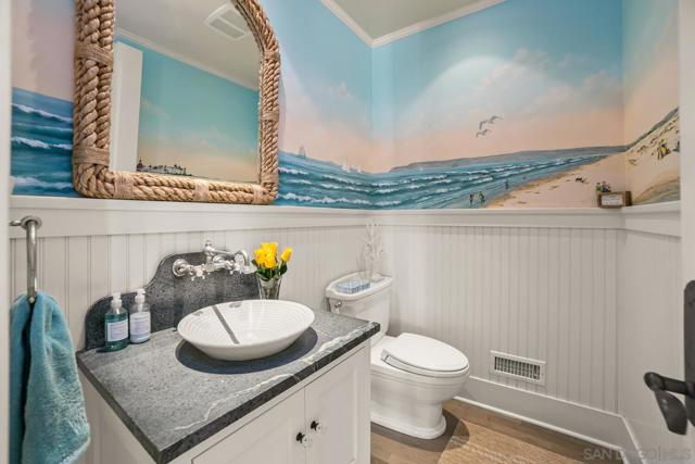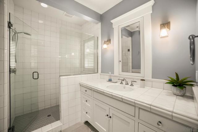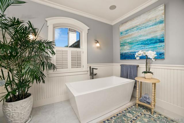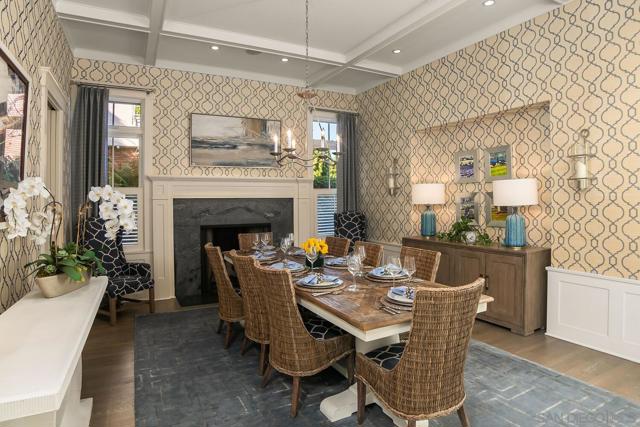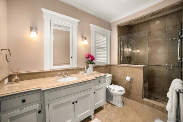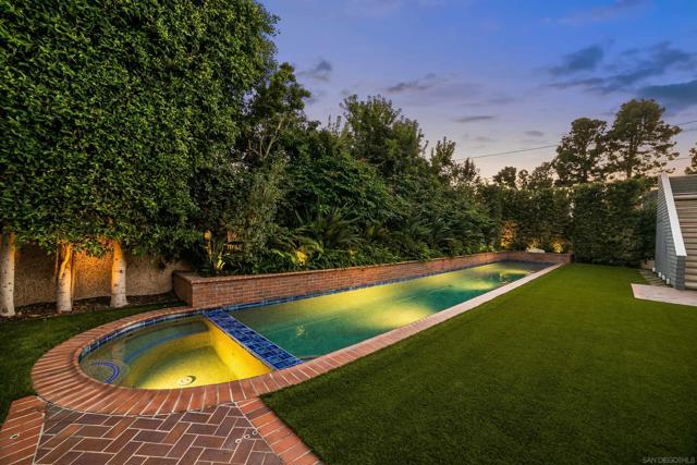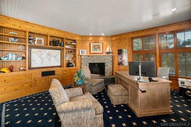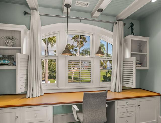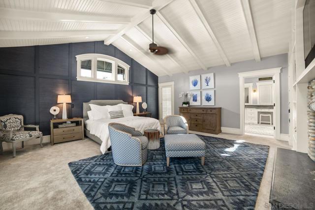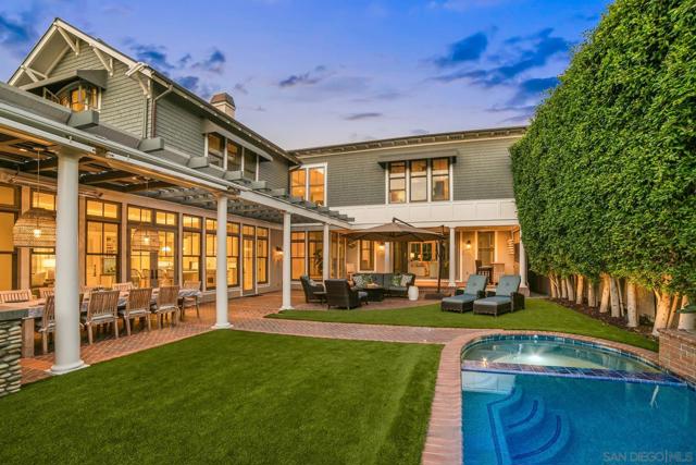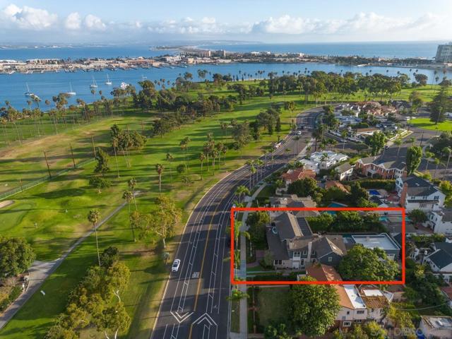 Enjoy the finest in Luxury Living along Glorietta Blvd with picturesque views of the Coronado Golf Course, Glorietta Bay and the iconic Coronado Bridge. This beautiful estate is located on one of the largest lots (12,200sf) on this charming street. The spacious 5,513 sf home has private outdoor entertaining areas with sparkling pool & spa (solar heated), casual lounging areas, and al fresco dining adjacent to a fireplace. The recently updated gourmet kitchen seamlessly connected to the family room and opening to a private backyard. Upstairs is the stylish main bedroom suite with cozy fireplace, huge walk-in closet, and newly designed main bathroom. The many upgrades make this home like new. Amenities of this home include Control4 Smart House app controls for heating and air conditioning, indoor/outdoor sound system & lighting as well as Pentair app pool controls, solar heating for pool & spa, outdoor shower, natural gas fire pit, security system, new tankless water heater, five gas fireplaces (which can also use wood), two offices with views of the water & golf course, Sub Zero 145 bottle wine storage, bar in living room along with fridge, Samsung Frame TV, roof deck with water & electrical outlets, exterior ceiling patio heaters, retractable awning, sound system throughout the house with ceiling and landscape speakers, plantation shutters, and Lifesource whole-house water filtration system. Gourmet kitchen includes 6 burner WolfRange with griddle and 2 ovens, Dacor microwave, Subzero refrigerator/freezer, warming drawer, soap stone back counters and quartz island. Newly designed main suite incudes completely remodeled main bathroom with new shower, cabinets, countertops, fixtures & tile flooring. Garage includes a refrigerator/freezer, golf cart plug, loft storage, and Spartaflex flooring. The bedroom on 1st floor and the optional bedroom/office do not have built-in closets but can be added. Drawings are available for an ensuite 5th bathroom on the 1st floor.
