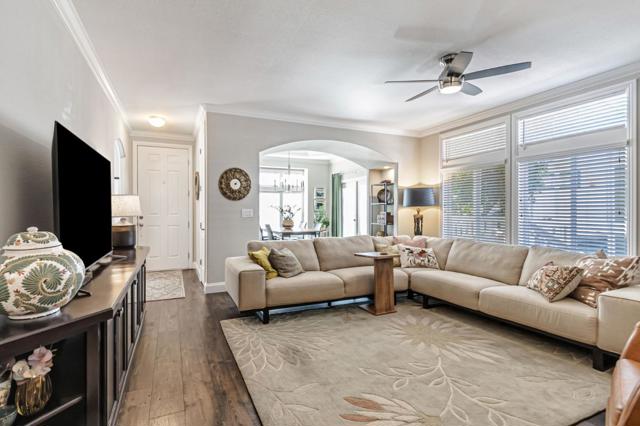 The home you've been waiting for in San Jose's Premier MHP, Villa Teresa.This is a Gold Standard for senior communities in Almaden Valley/Blossom Hill area. Walking distance to Almaden Lake, Oakridge Mall, YMCA, shopping and multiple restaurant choices. Easy, quick Hwys 87 & 85 access + Light Rail nearby. This unique Silvercrest home was a model home that was not occupied until 2023, so loaded with custom add-ons. 3 spacious bedrooms, 2 full baths & approx 1650 SF of luxury living. Chef's dream galley style kitchen including stainless steel appliances; plenty of kitchen cabinets, soft close cab doors & slide out shelves on bottom cabinets. A nice eating area for informal meals. Durable granite counters throughout, new custom kitchen/dining room light fixtures. Large primary bedroom/bath en suite with walk-in closet, 6ft tiled shower with glass entry. Warming LR gas fireplace & cooling central AC. 9' flat ceilings, stunning 8 ft tall interior doors. Crown molding, coffered ceilings, engineered hardwood flooring, energy saving dual pane windows. Gorgeous French door access to an inviting covered Trex deck porch then just steps to a unique large outdoor entertainment style side yard. Mature citrus trees. Brand new redwood fencing at rear of home. Ser# 17600PHA101010A/B